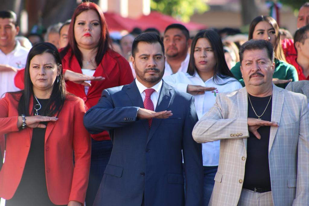 Para dar inicio a la celebración las diferentes instituciones se dieron cita en la explanada del jardín principal para realizar el tradicional acto cívico, el cual estuvo a cargo de la Administración 2021-2024 con la participación de la escolta de Seguridad Pública.
