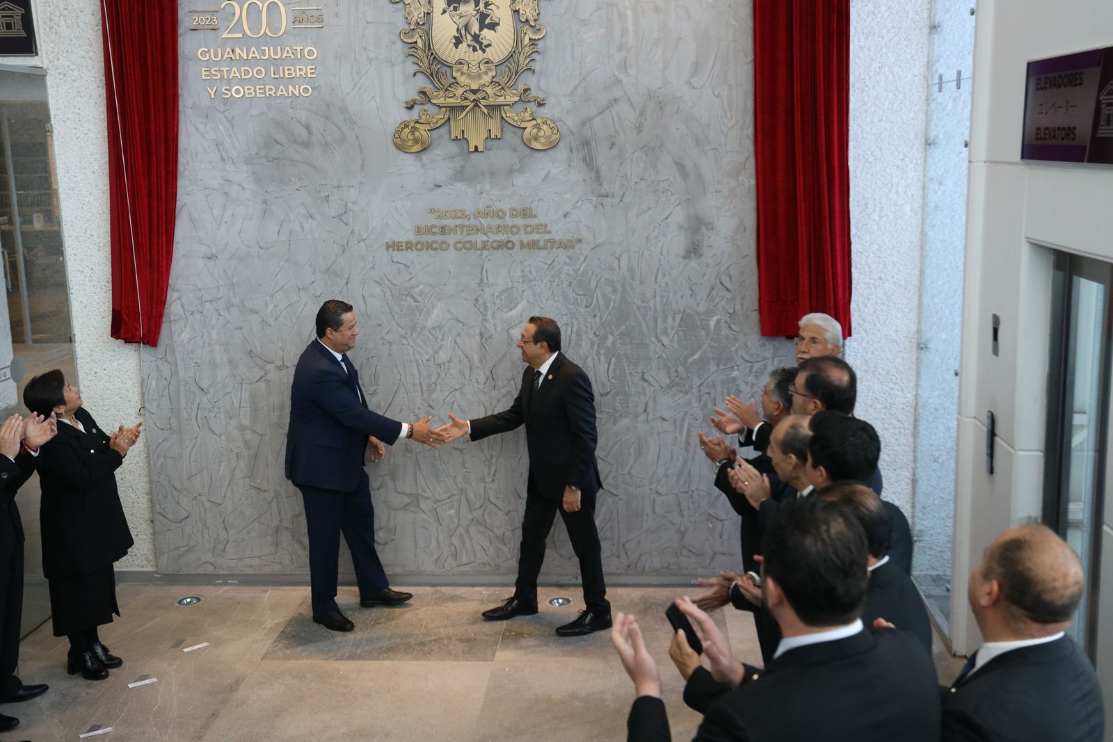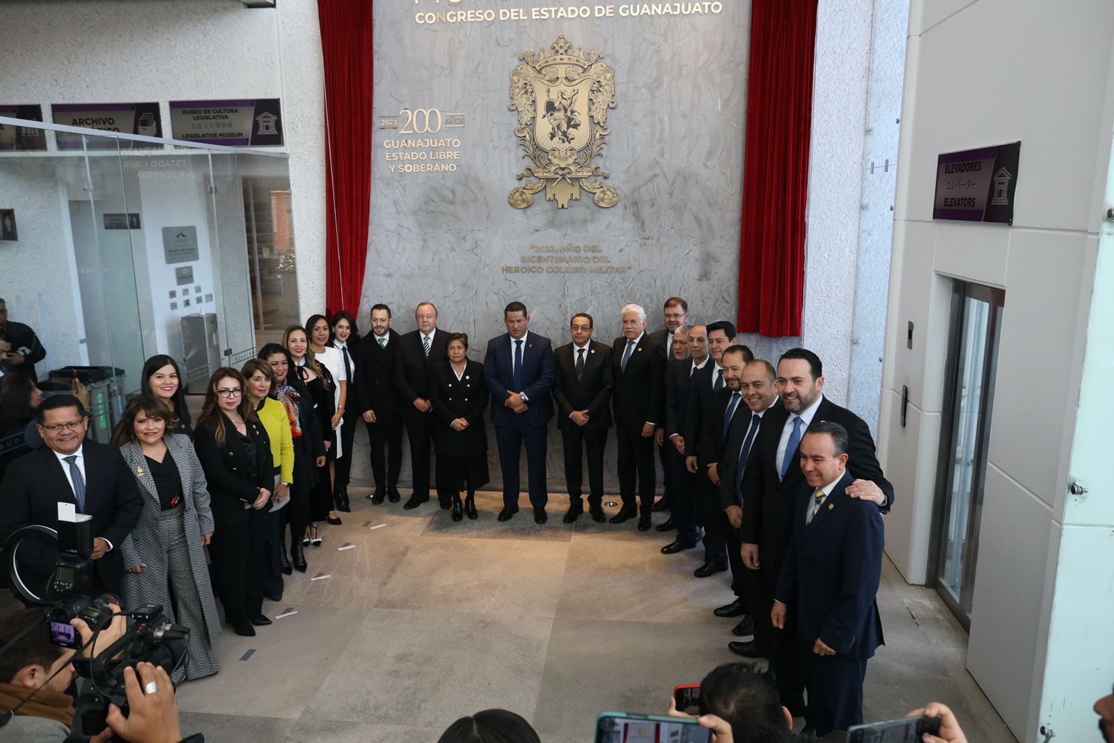 Cabe mencionar que previo a la Sesión Solemne se llevó a cabo la develación de letras doradas con motivo de los 200 años de la Proclamación de Guanajuato como Estado Libre y Soberano por parte de titulares de los Poderes del Estado e integrantes de la Junta de Gobierno y Coordinación Política.