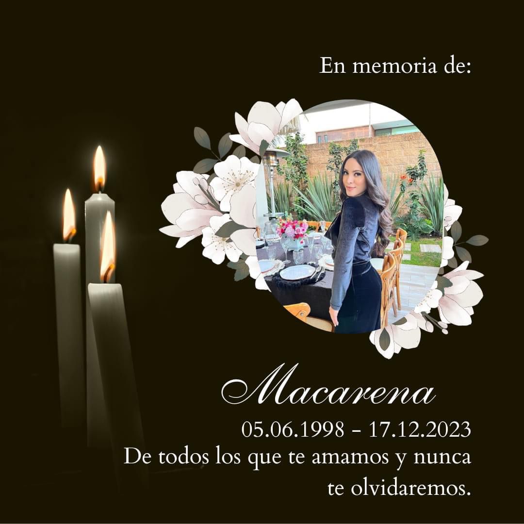 Es muy injusto y me llena de coraje lo que pasa en un pías sin consecuencias. Te amamos Macarena y el 17 de diciembre no sé olvidará jamás”, dijo a través de redes sociales un familiar.
