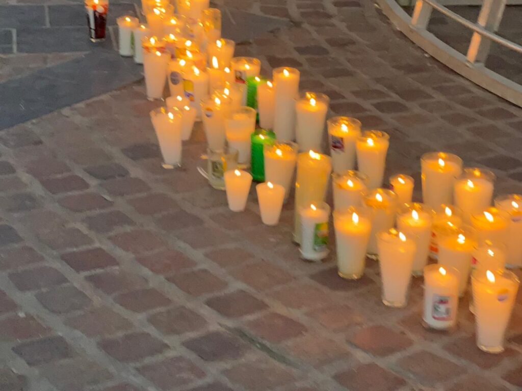 Primeramente se encendieron las veladoras pasando la llama de la paz entre los asistentes, posteriormente se formaron para iniciar con el recorrido en la calle Hidalgo hacia la Explanada del Carmen.