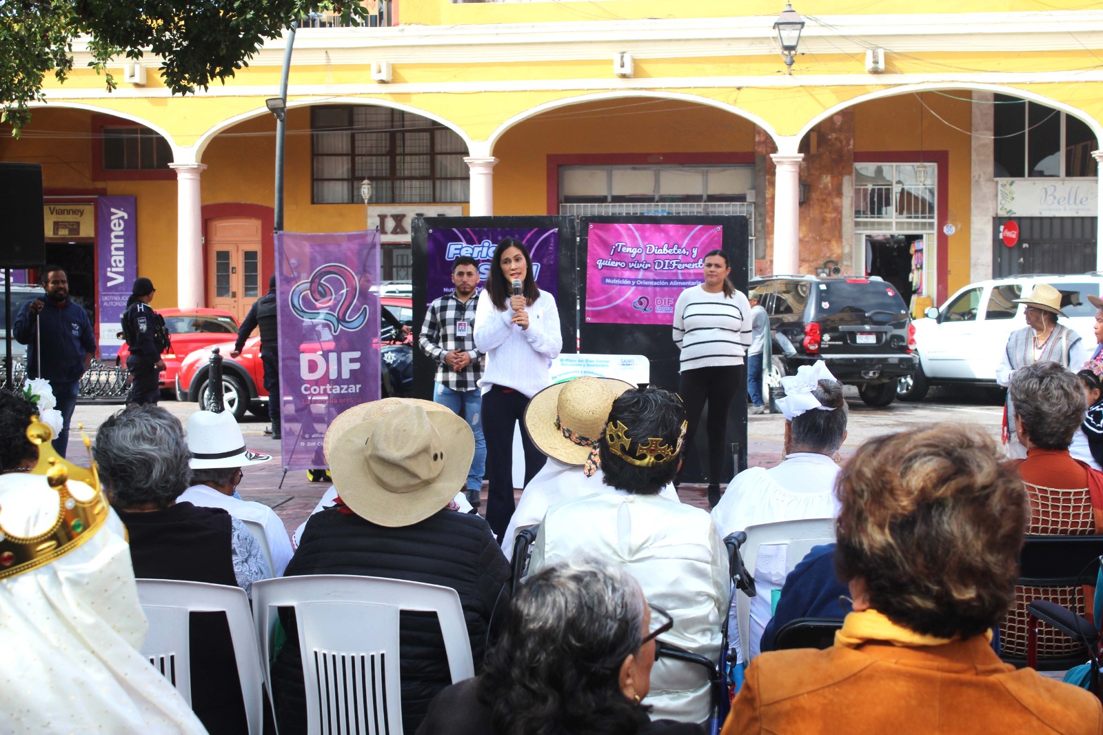 Dentro de la feria, se contó con la participación del ballet folklórico y coro del Centro Gerontológico de DIF Municipal, quienes presentaron números musicales y participaron en una pastorela. Posteriormente, autoridades realizaron un recorrido por stands a cargo de CAISES Cortazar, Nutrición DIF, Psicología DIF, Platillo Saludable CIS, y Platillo Saludable Gerontológico.
