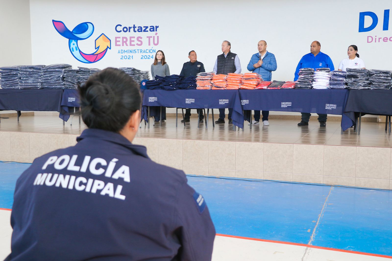 En la entrega de uniformes, estuvo presente el Presidente Municipal, Ariel Corona; el Secretario del Ayuntamiento, Alejandro Perea Castro; la Regidora del Ayuntamiento, Andrea Aguilar; así como el director del Sistema de Seguridad Pública Municipal, Martín González Maqueda; el Director de la Coordinación Municipal de Protección Civil, Salvador Juárez García; y la Directora del Sistema de Emergencias 9-1-1, Flor de María Juárez García.