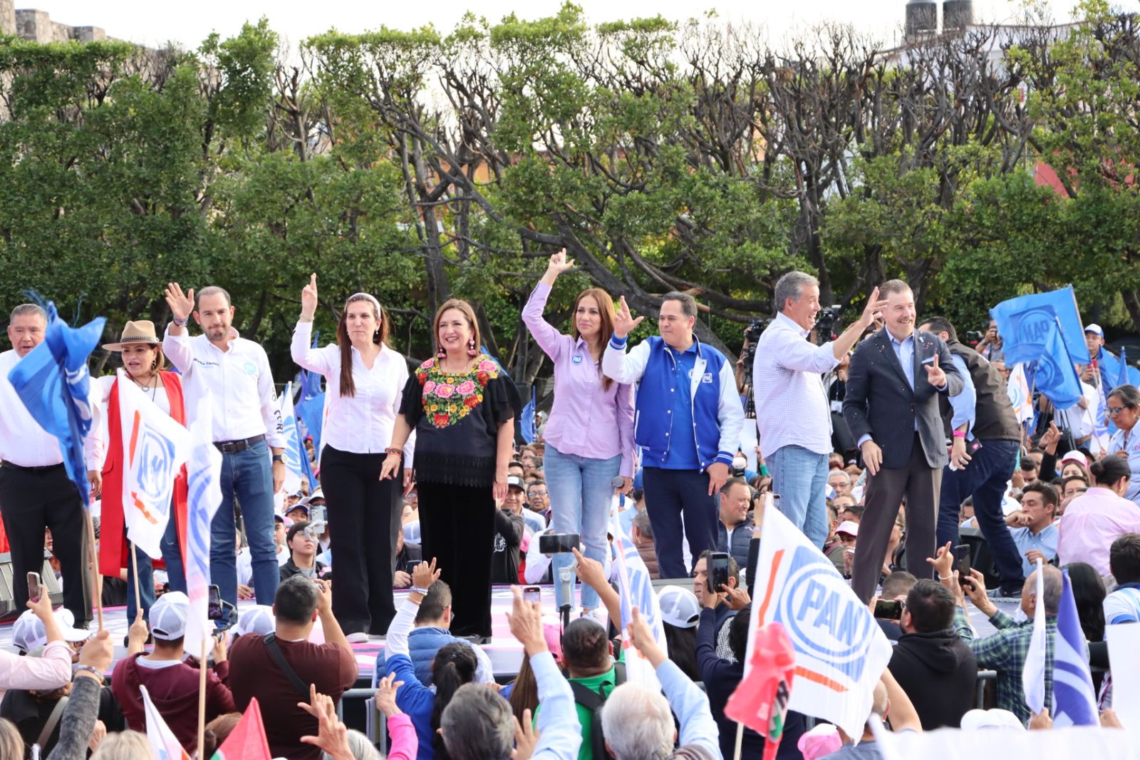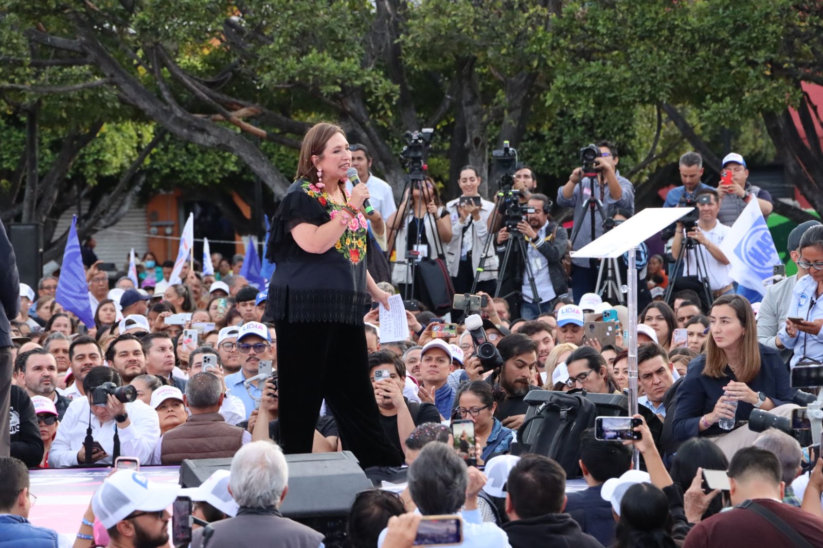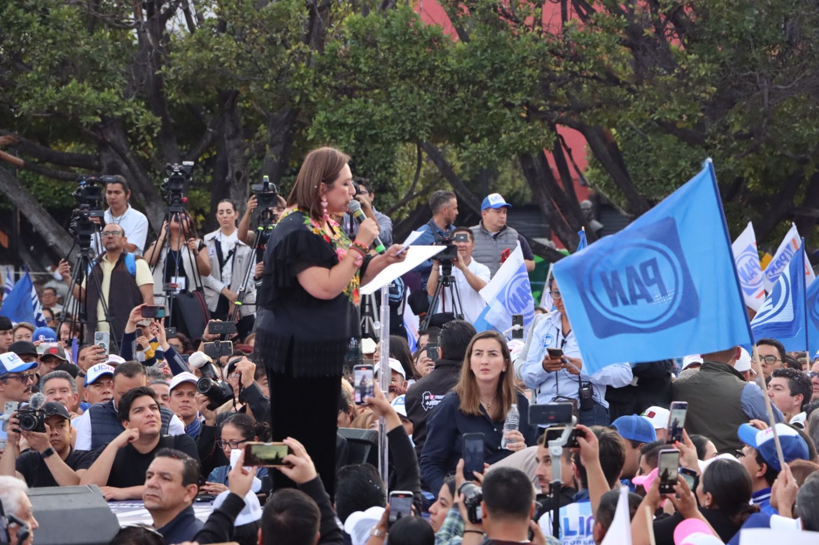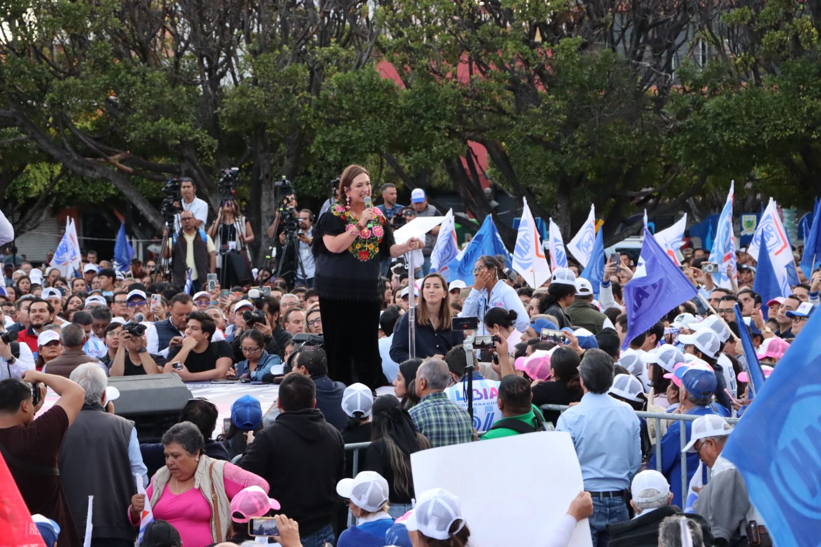 Con una asistencia de cuatro mil personas aproximadamente, cerró Xochitl Gálvez la pre campaña de la Alianza Opositora al actual gobierno federal, en la Plaza Miguel Hidalgo, donde las banderas del PAN y PRI ondearon en apoyo a su representante, mientras que en esta tierra que fue gobernada por el PRD no se vieron militantes del Sol Azteca.