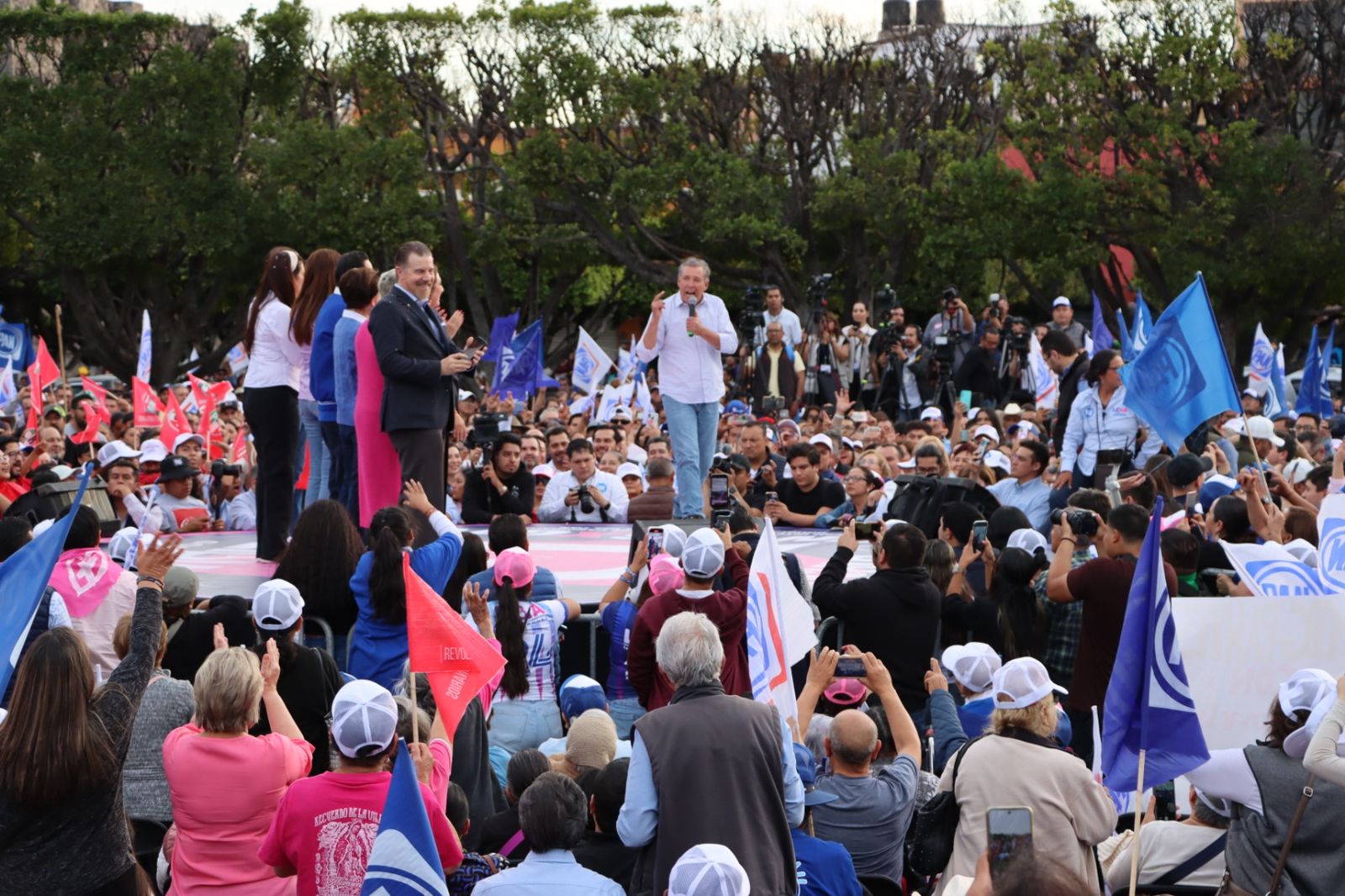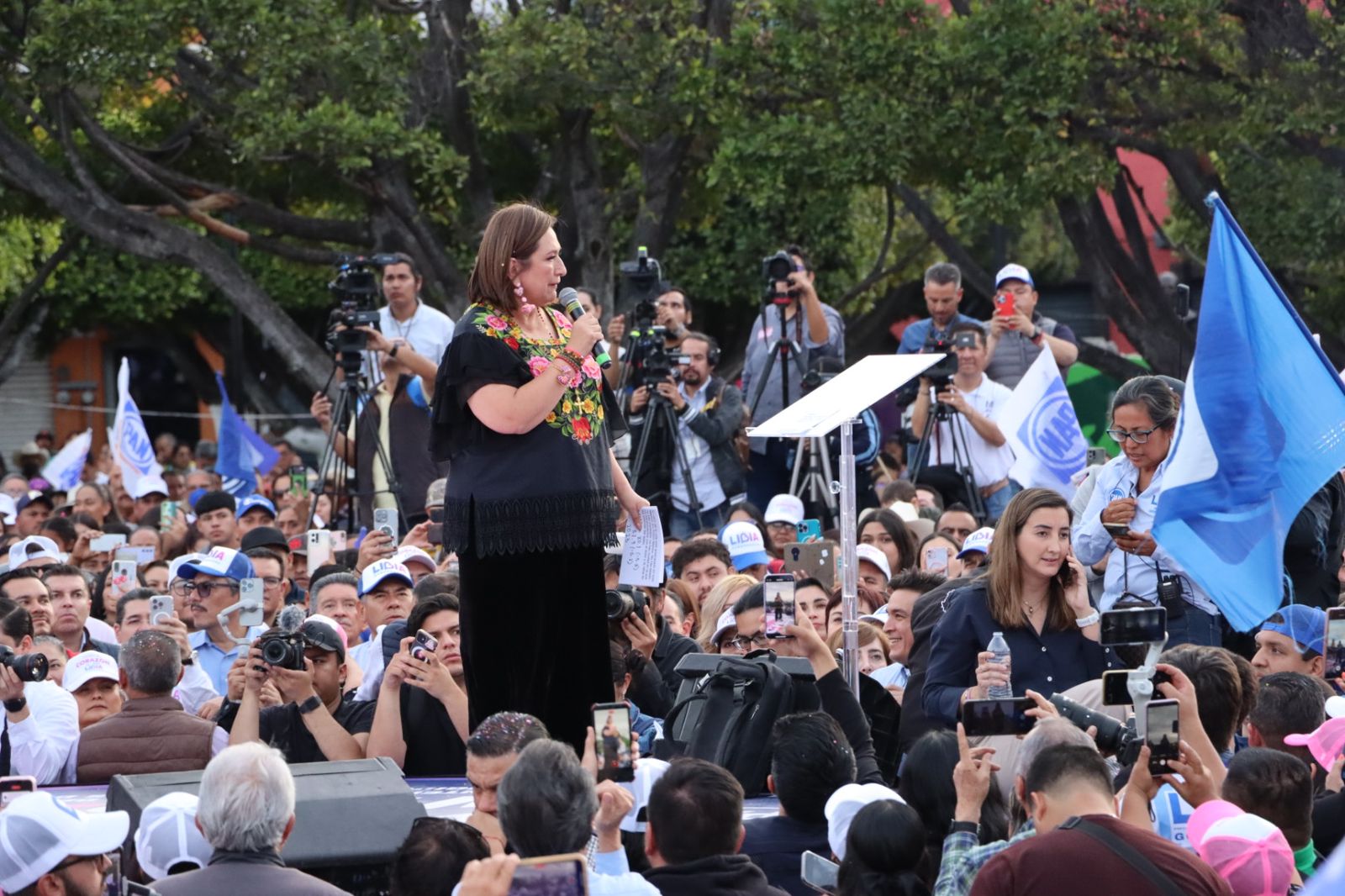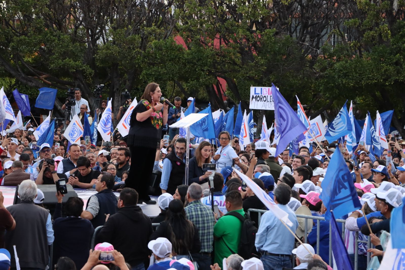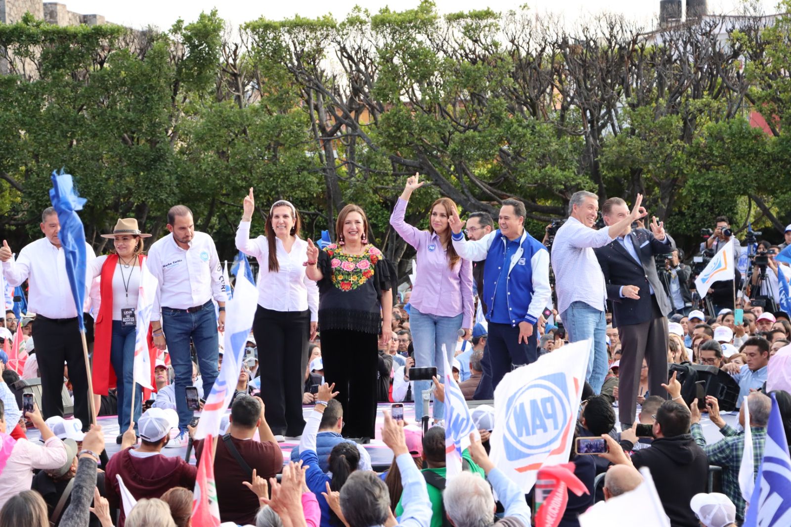 Con una asistencia de cuatro mil personas aproximadamente, cerró Xochitl Gálvez la pre campaña de la Alianza Opositora al actual gobierno federal, en la Plaza Miguel Hidalgo, donde las banderas del PAN y PRI ondearon en apoyo a su representante, mientras que en esta tierra que fue gobernada por el PRD no se vieron militantes del Sol Azteca.