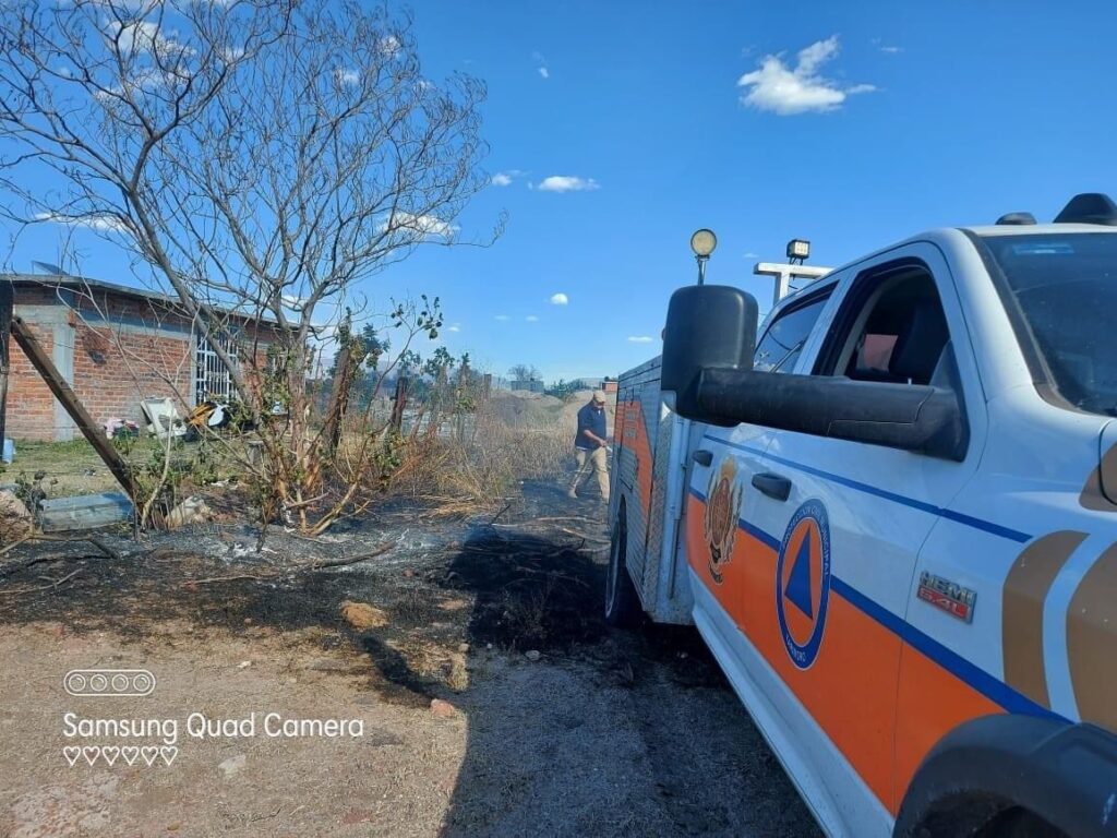Al lugar se desplaza personal operativo de Protección Civil de Tarimoro junto con la unidad de ataque rápido, donde al arribar al lugar aún se localiza un incendio de pastizal con riesgo de afectación a una vivienda, por lo cual el Personal de PC comenzó las maniobras de sofocación del mismo para evitar un riesgo hacia la vivienda.