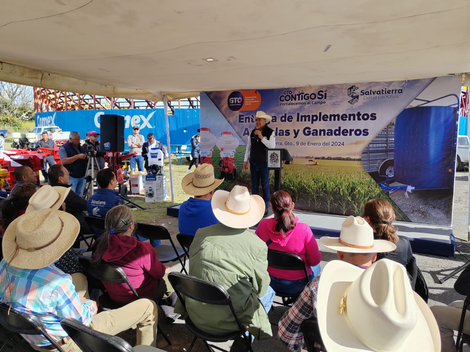 El Presidente Municipal Germán Cervantes Vega en conjunto con el Secretario de Desarrollo Agroalimentario y Rural del estado de Guanajuato Paulo Bañuelos Rosales realizaron la entrega de equipamiento a 46 unidades de producción pecuaria esto a través del programa Mi Ganado Productivo 2023; consistiendo el apoyo en: 1 ensiladora 6 molinos, 1 rastrillo, 14 remolques ganaderos, 21 remolques cama baja, 1 remolque hidráulico y 2 segadoras invirtiéndose en ello $3,114,500.00 aportados por estado y beneficiados.