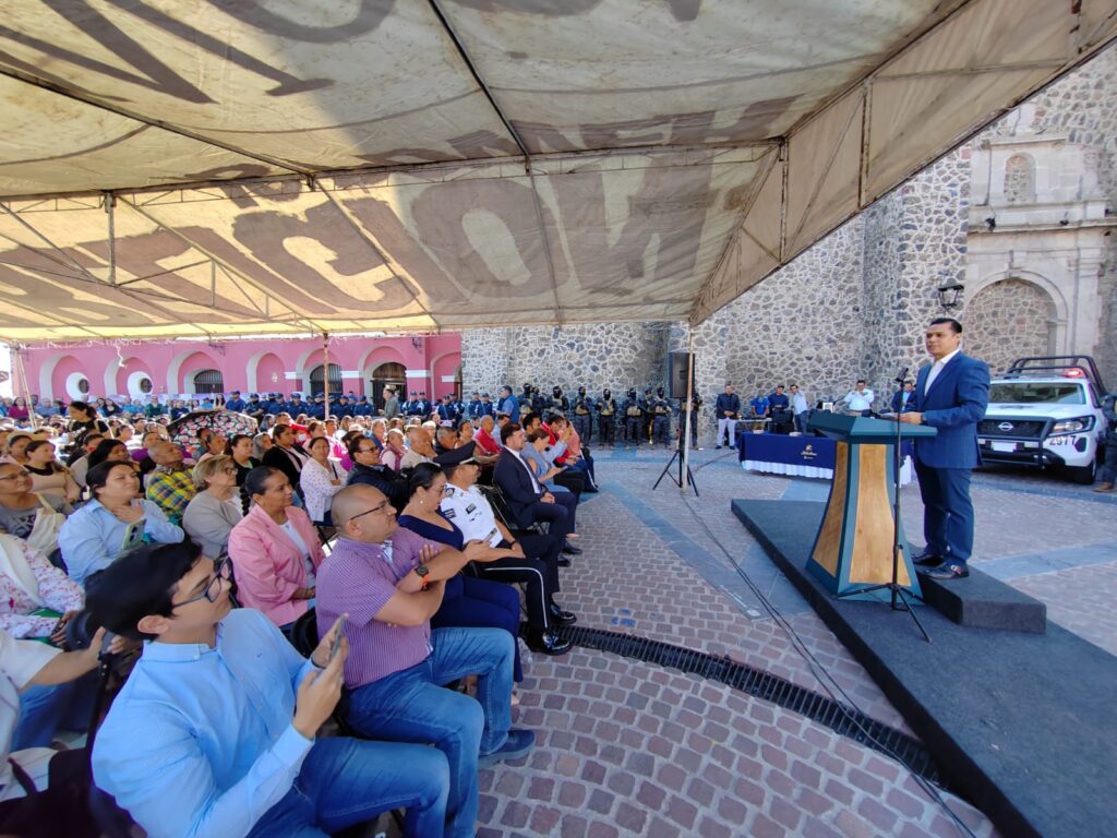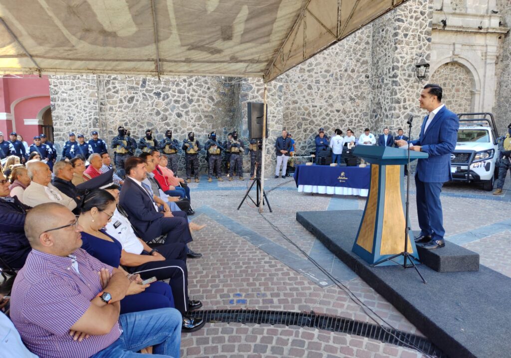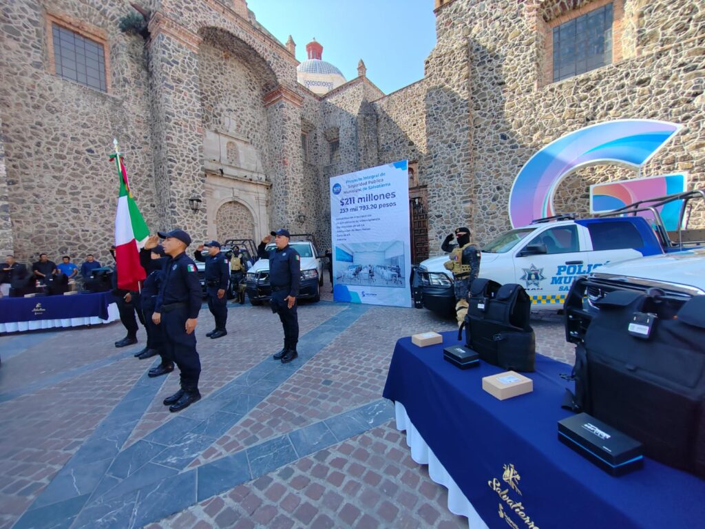 El Presidente Municipal Germán Cervantes Vega en compañía de Jesús Oviedo Herrera Secretario de Gobierno del estado de Guanajuato, Regidores del Ayuntamiento, Ángel Castillo Bárcenas Director de Seguridad Tránsito y Policía Municipal y ciudadanos estuvieron presentes en el arranque del “Proyecto Integral de Seguridad Pública de Salvatierra” y en la entrega de equipamiento.