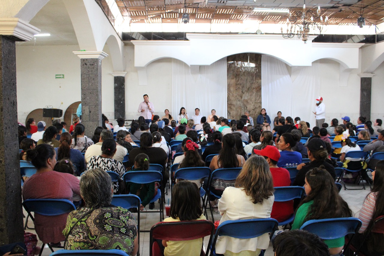 El Salón Delfos fue la sede donde 100 niños y jóvenes de nivel primaria y secundaria de diversas comunidades y cabecera municipal, obtuvieron su beca de manos de las autoridades.