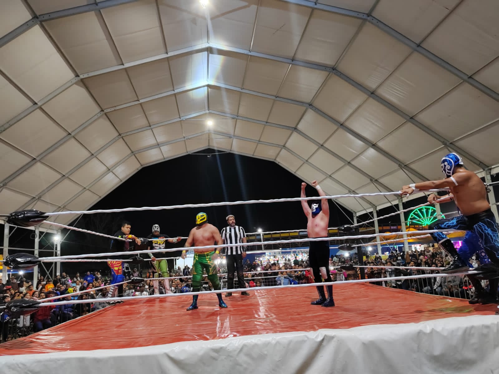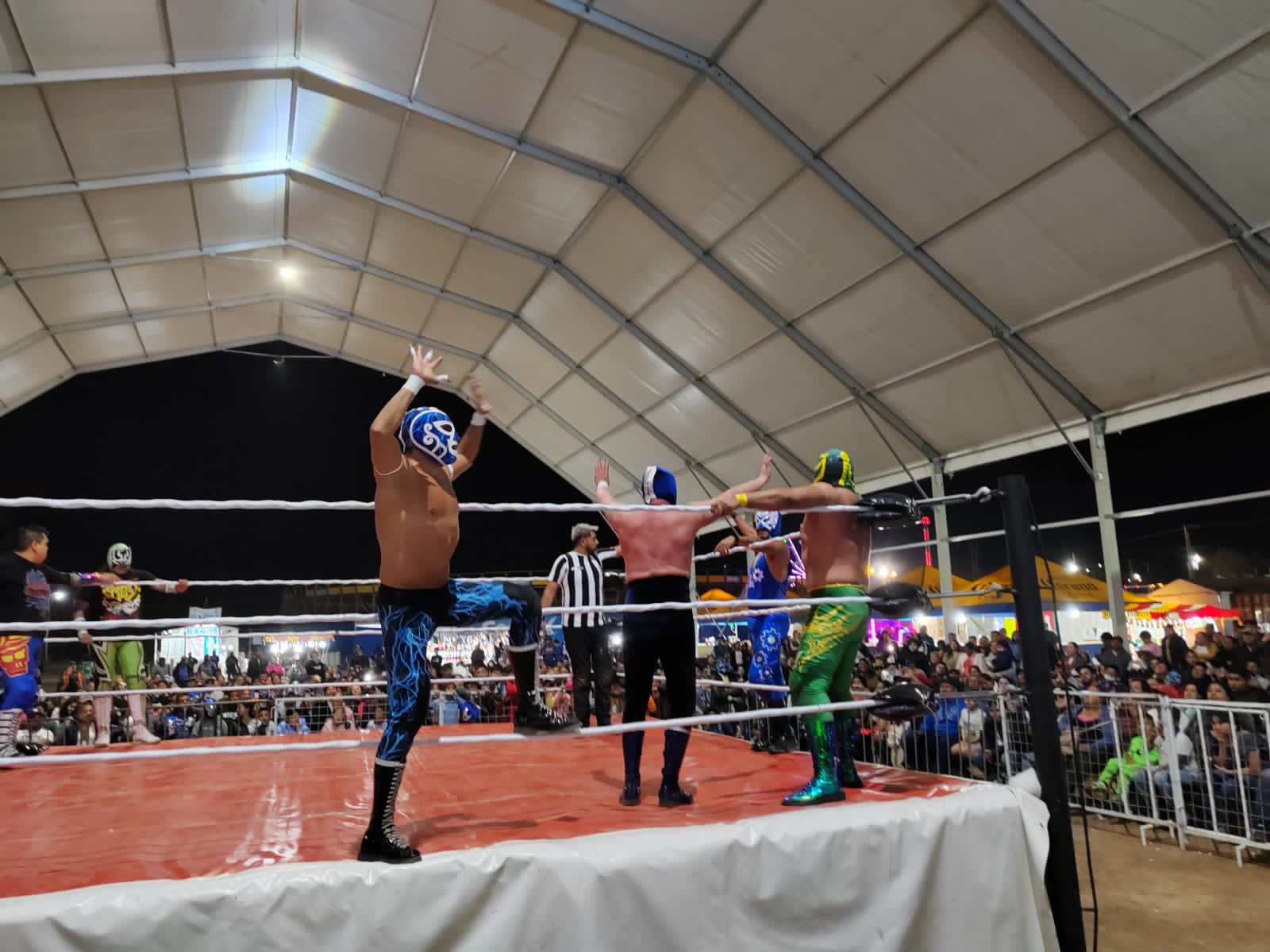 Alrededor de 3,000 personas disfrutaron a la grande de la función de lucha libre la cual consistió en 4 grandes batallas en la primera participaron Furia Azteca y Príncipe Azteca contra Guerreo Maori y Fire Dragón resultando ganadores estos últimos pertenecientes al bando rudo