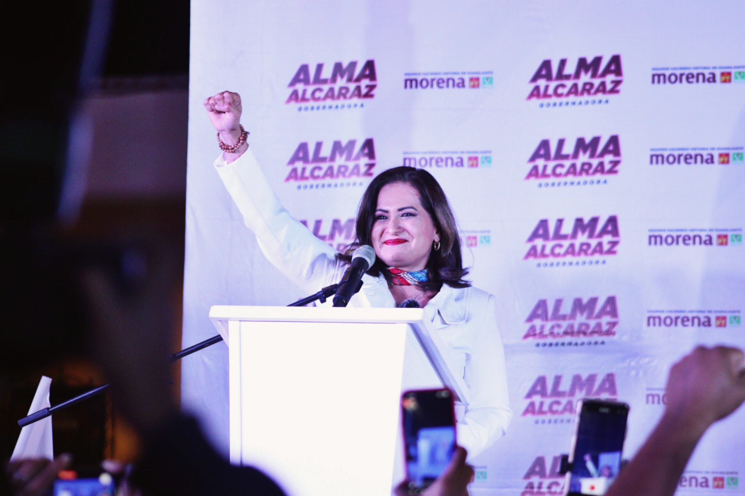Alma Alcaraz invitó a los guanajuatenses a unirse con ella para lograr un nuevo Guanajuato con mayor seguridad, mejores empleos, buenos salarios y más becas y programas sociales para el pueblo.