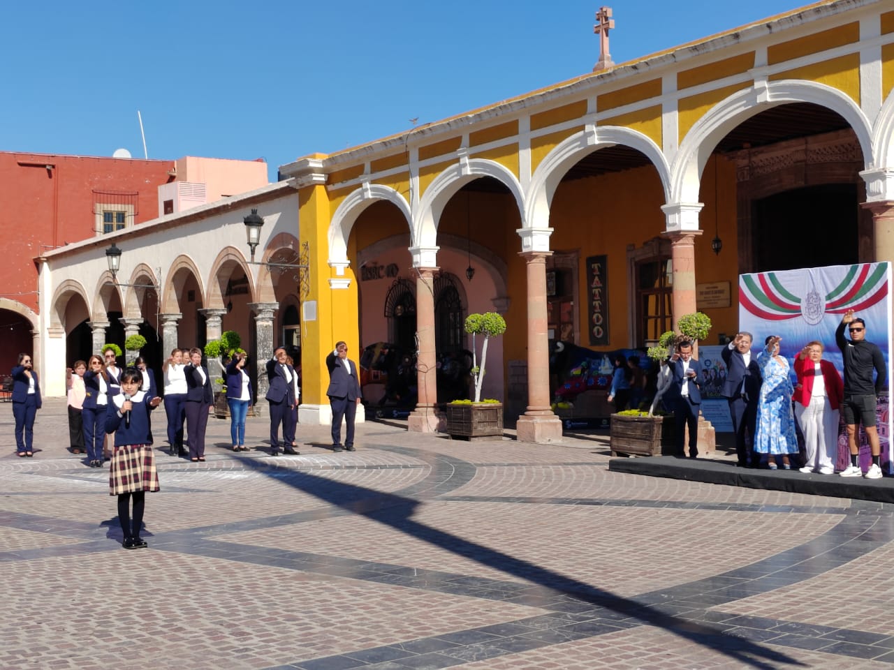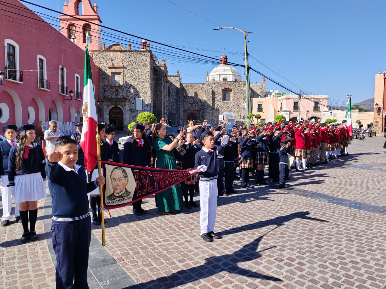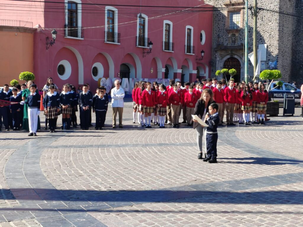 En el evento participaron la Síndico Municipal Yatziri Mendoza Jiménez, directores de diversas áreas de la administración, alumnos de la escuela primaria Benito Juárez y del Complejo Educativo Fray Andrés de San Miguel quienes con mucho respeto rindieron honores a la bandera, entonaron el himno nacional mexicano y realizaron el juramento al lábaro patrio.