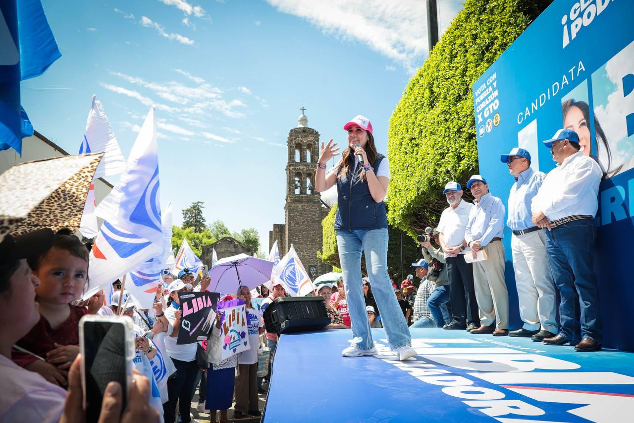 Desde la comunidad de San Pablo, la señora Érika llegó a la cabecera municipal de Jerécuaro y sin importar el partido al que apoya, gritó al unísono: “¡Libia Gobernadora, Libia Gobernadora!”, convencida de que votará con fuerza y corazón el próximo 2 de junio.