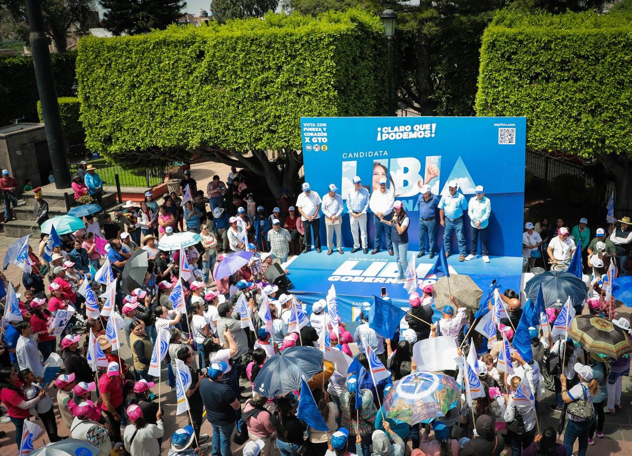 Con banda de viento, batucada y las porras de simpatizantes de los tres partidos que integran la coalición ‘Fuerza y Corazón por Guanajuato’ (PAN, PRI, PRD), Libia lanzó un mensaje de unidad en este nuevo comienzo.