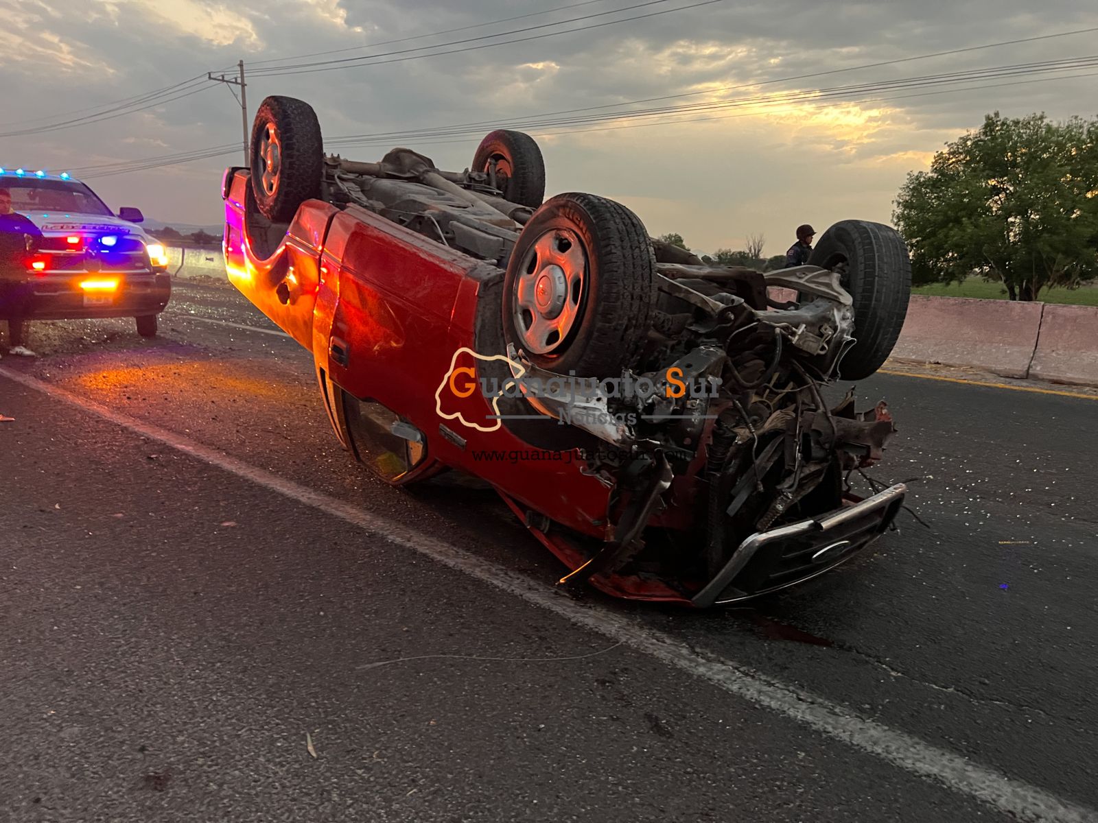Un accidente vehicular del tipo volcadura dejó como saldo daños materiales y personas con lesiones menores en la carretera Salvatierra-Celaya.