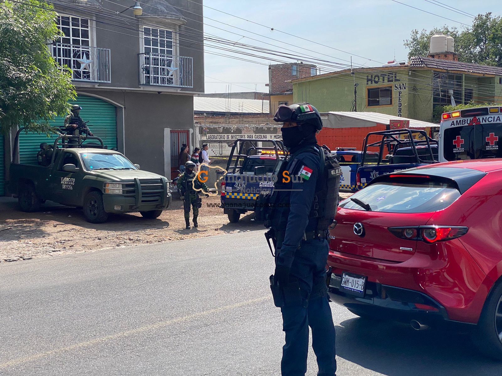Alrededor de las 02:00 de la tarde de este 1 de abril se dio aviso a la central de emergencia 911, para notificar sobre detonaciones por proyectil de arma de fuego en el interior de un taller eléctrico que se encuentra en la entrada a la comunidad de San Pedro de los Naranjos.