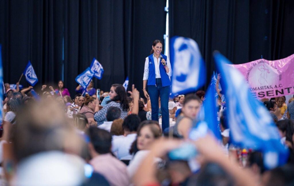 La candidata de la coalición PAN, PRI y PRD se comprometió a llevar más apoyos, tarjetas rosas para mujeres comerciantes y financiamiento para hacer crecer sus negocios.