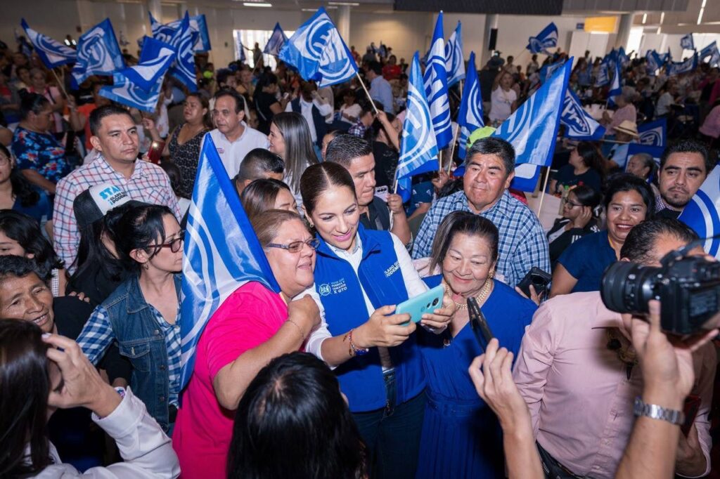 – La candidata a la gubernatura se reunió con más de 2 mil comerciantes, a quienes les reiteró su respaldo con la tarjeta rosa para mujeres del comercio, financiamientos y la creación del Escuadrón Anti-Extorsión para erradicar este delito.