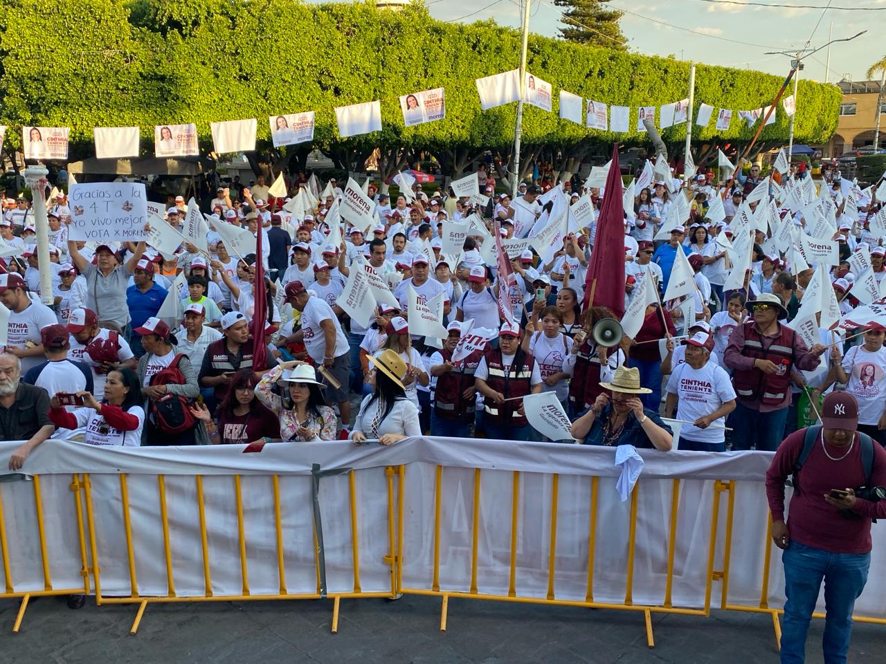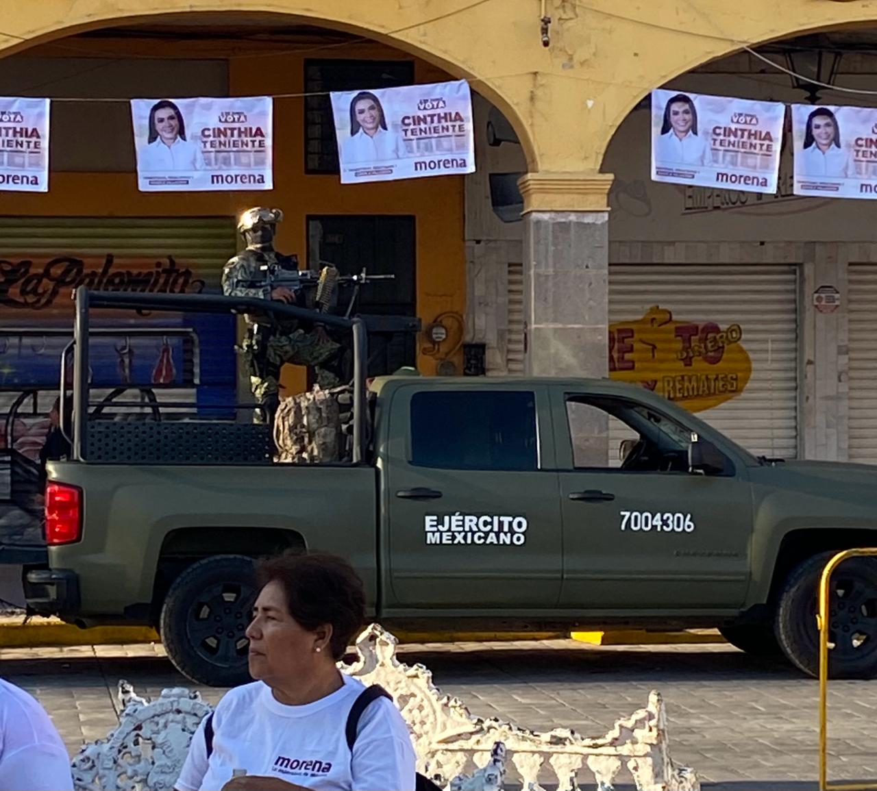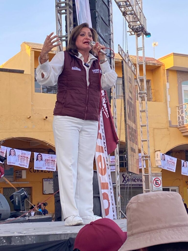 Con gran despliegue de elementos de la Guardia Nacional y del ejército, la candidata de Morena a la alcaldía local, Cinthia Teniente, realizó la Marcha de la Esperanza por varias calles de la ciudad, y en su discurso señaló que “las amenazas no nos van a detener”.