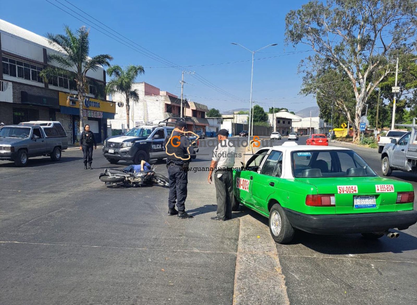 Los primeros en responder fueron los elementos de vialidad, quienes se dirigieron al lugar ubicado frente al AutoZone, donde encontraron al motociclista accidentado y al taxi involucrado estacionado cerca.