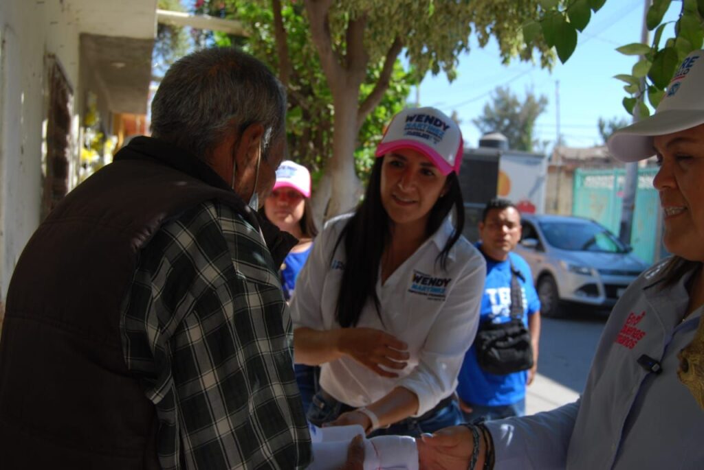 A quien también hemos visto de manera frecuente por Salvatierra y sus comunidades, como en San Pedro de los Naranjos o en San Nicolás de los Agustinos, es a la candidata de la coalición Fuerza y Corazón por México por el Distrito 10, Wendy Martínez, quien ha estado muy presente en reuniones con productores, empresarios y trabajadores del sector del campo, también con mujeres de distintos sectores y en la puerta de las casas de las y los salvaterrenses.