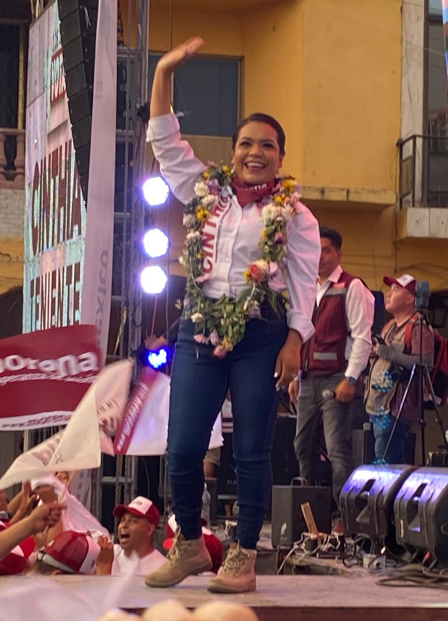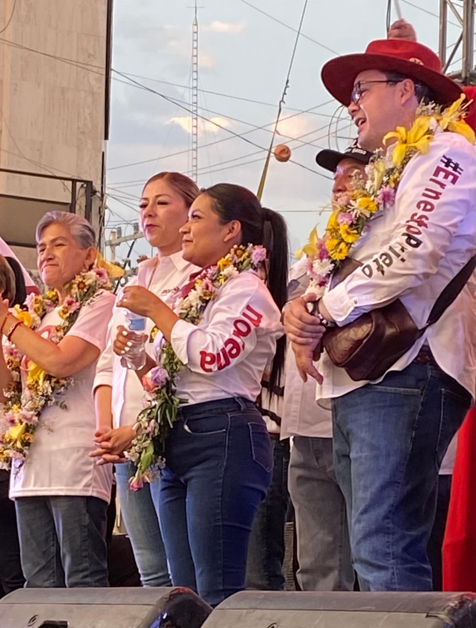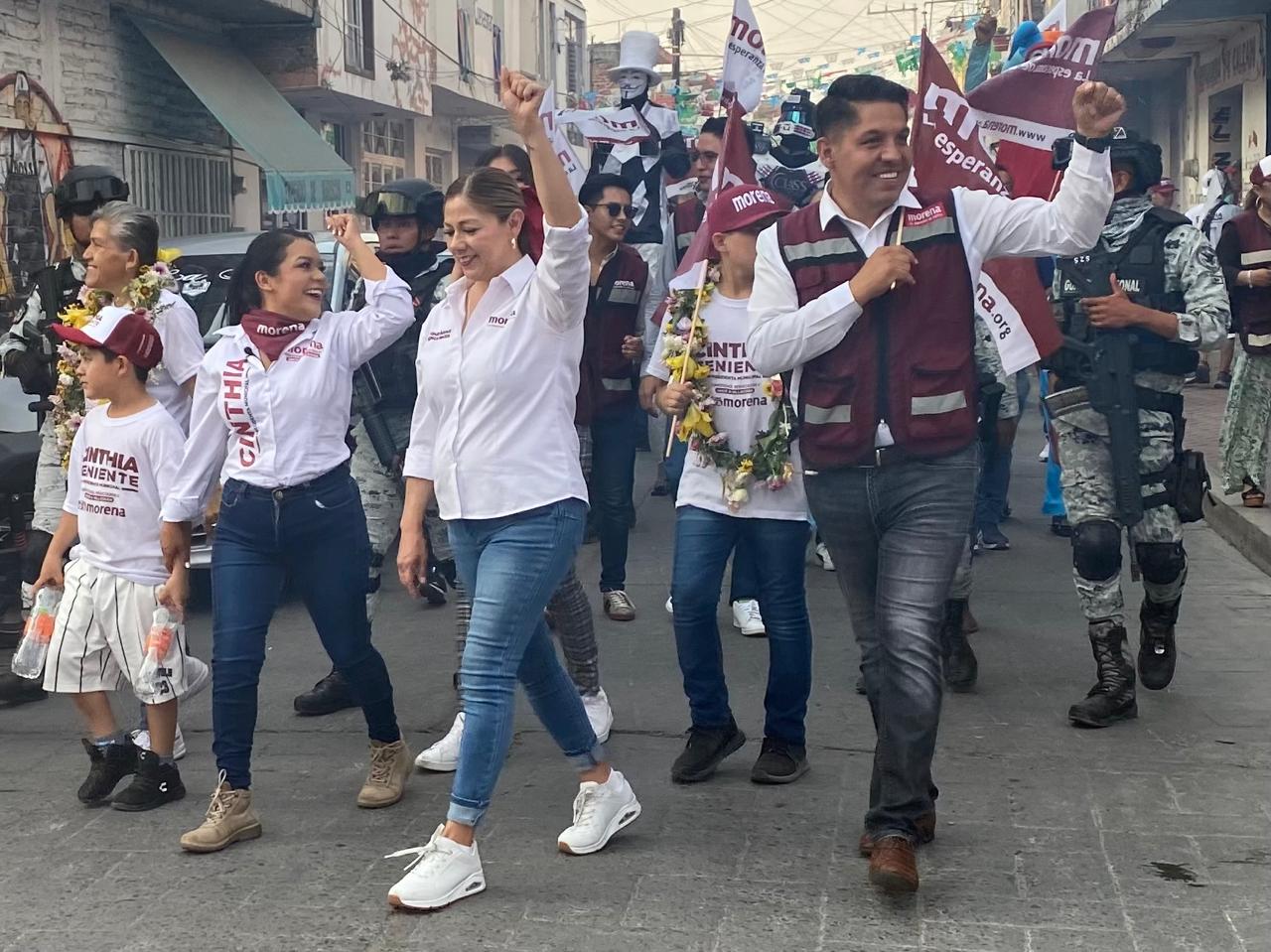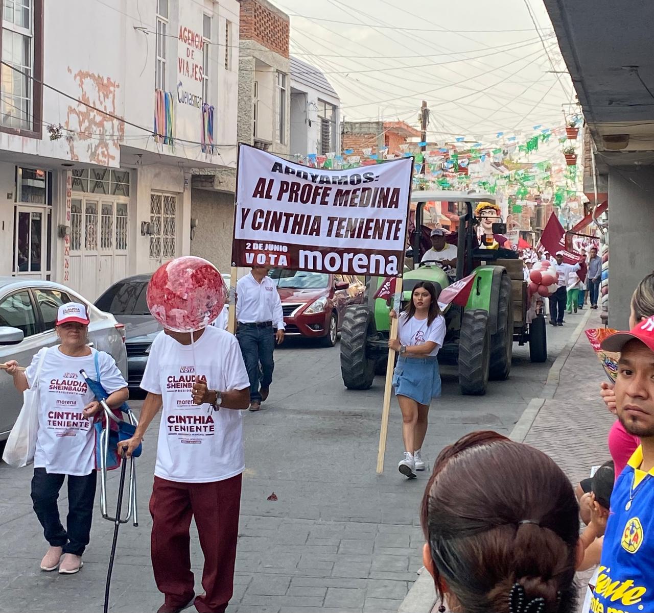 En el cierre de campaña que hizo hoy la abanderada de Morena, Cinthia Teniente, con un recorrido por varias calles y acompañada por unas cinco mil personas, representantes de varias colonias, comunidades y grupos sociales incluso charros, agradeció las manifestaciones de apoyo.