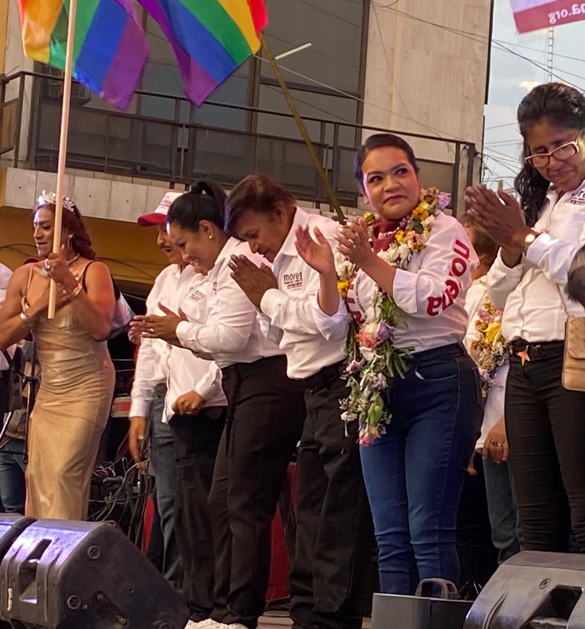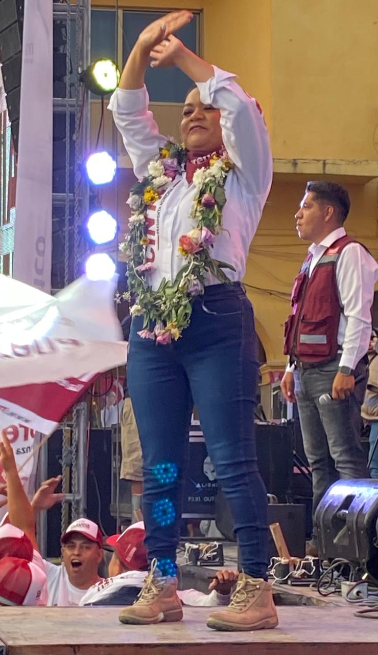 En el cierre de campaña, la candidata de morena, que será la primera mujer presidente municipal de Villagrán, estuvo acompañada por todos los miembros de su planilla, pero también de los candidatos a la diputación federal, al senado y con la secretaria general de Morena en el estado.