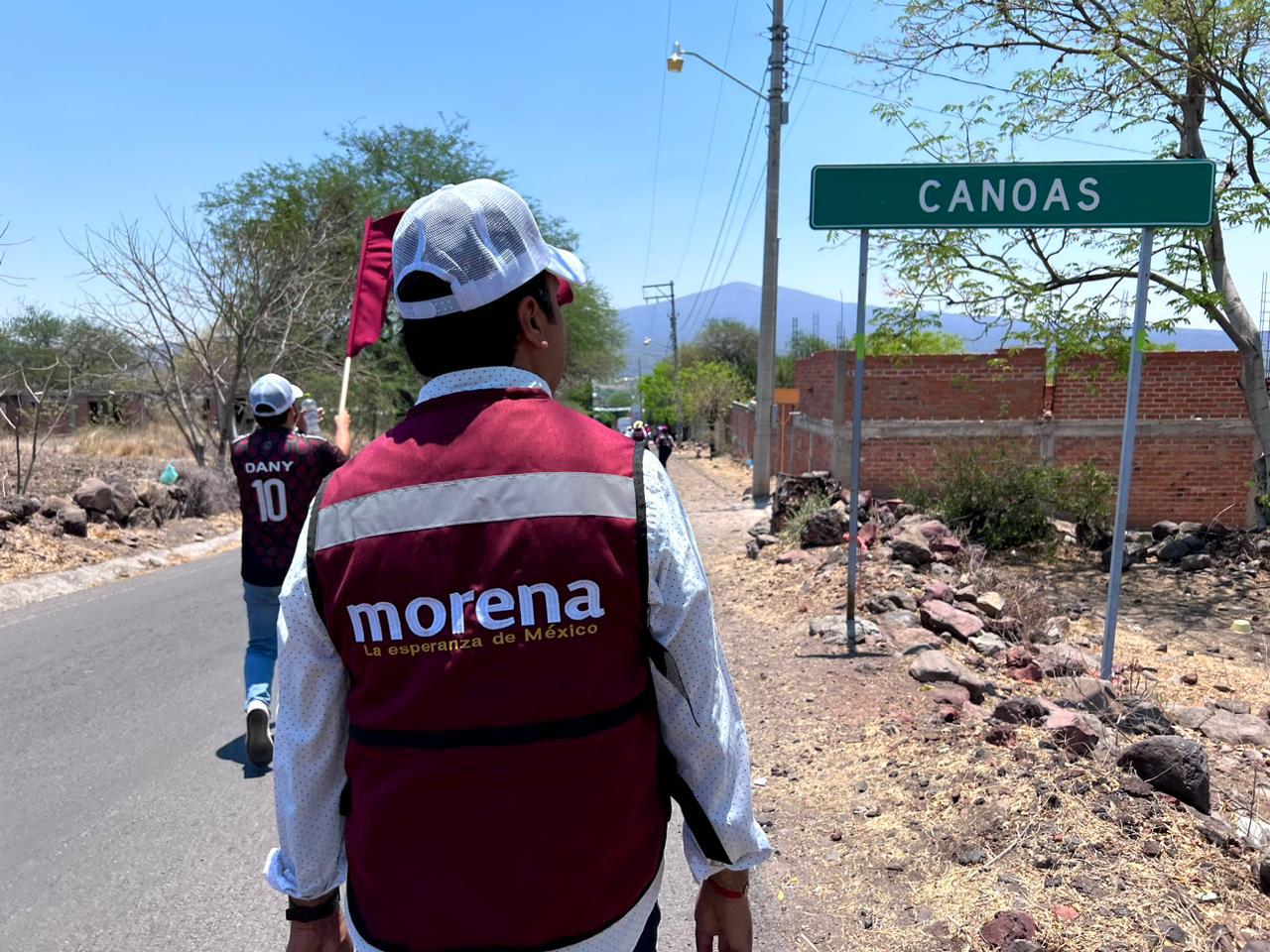 En un recorrido por las calles de Las Canoas, José Daniel Sámano Jiménez, candidato de Morena a la presidencia de Salvatierra, proyecta un posible triunfo en las próximas elecciones del 2 de junio, pintando al municipio con el color guinda, característico de su partido.