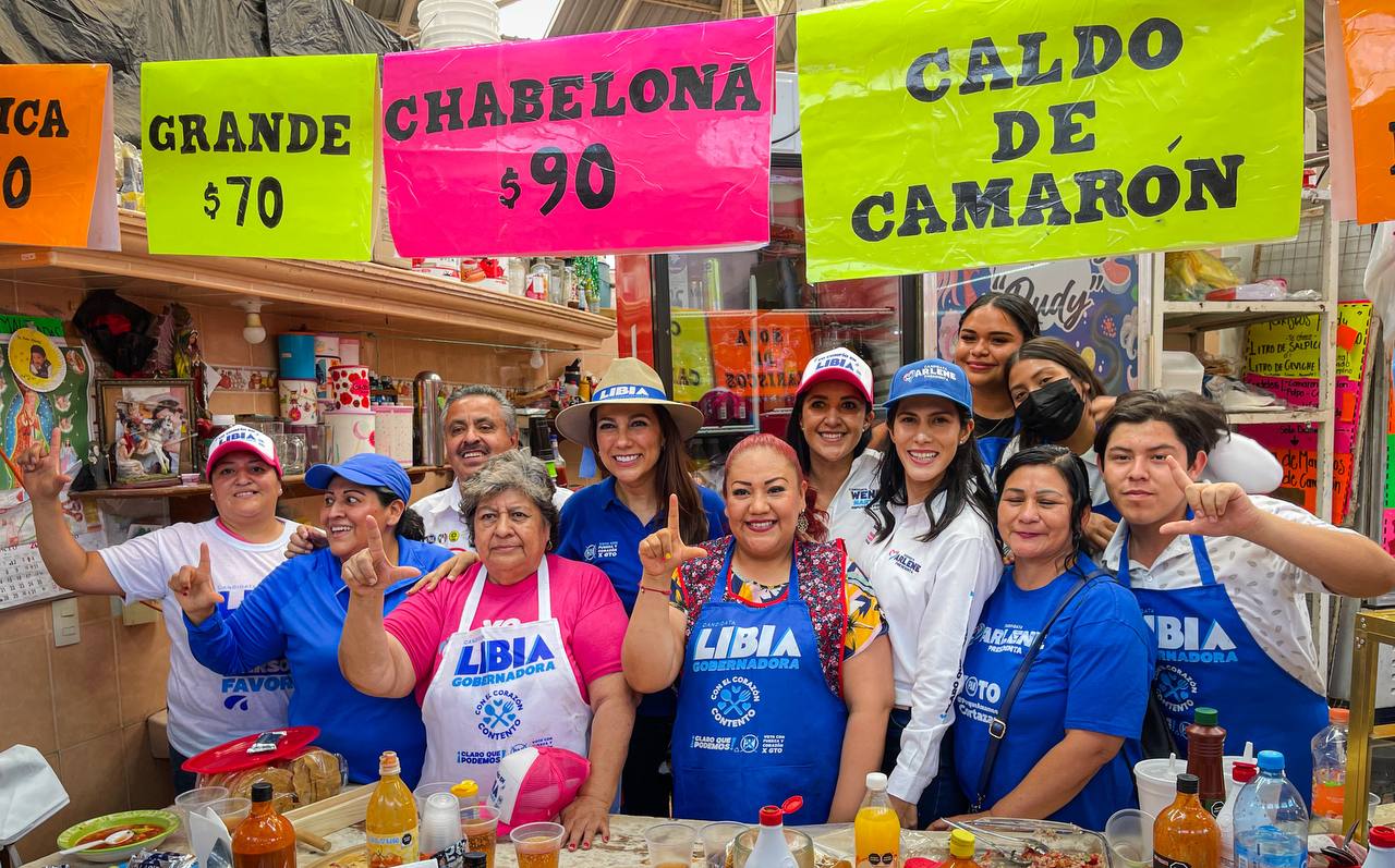 Este viernes las candidatas Marlene de Anda, aspirante a la Presidencia Municipal de Cortazar y Libia Dennise García Muñoz Ledo, contendiente a Gobernadora del Estado de Guanajuato, se unieron para visitar a los comerciantes del Mercado Hidalgo.