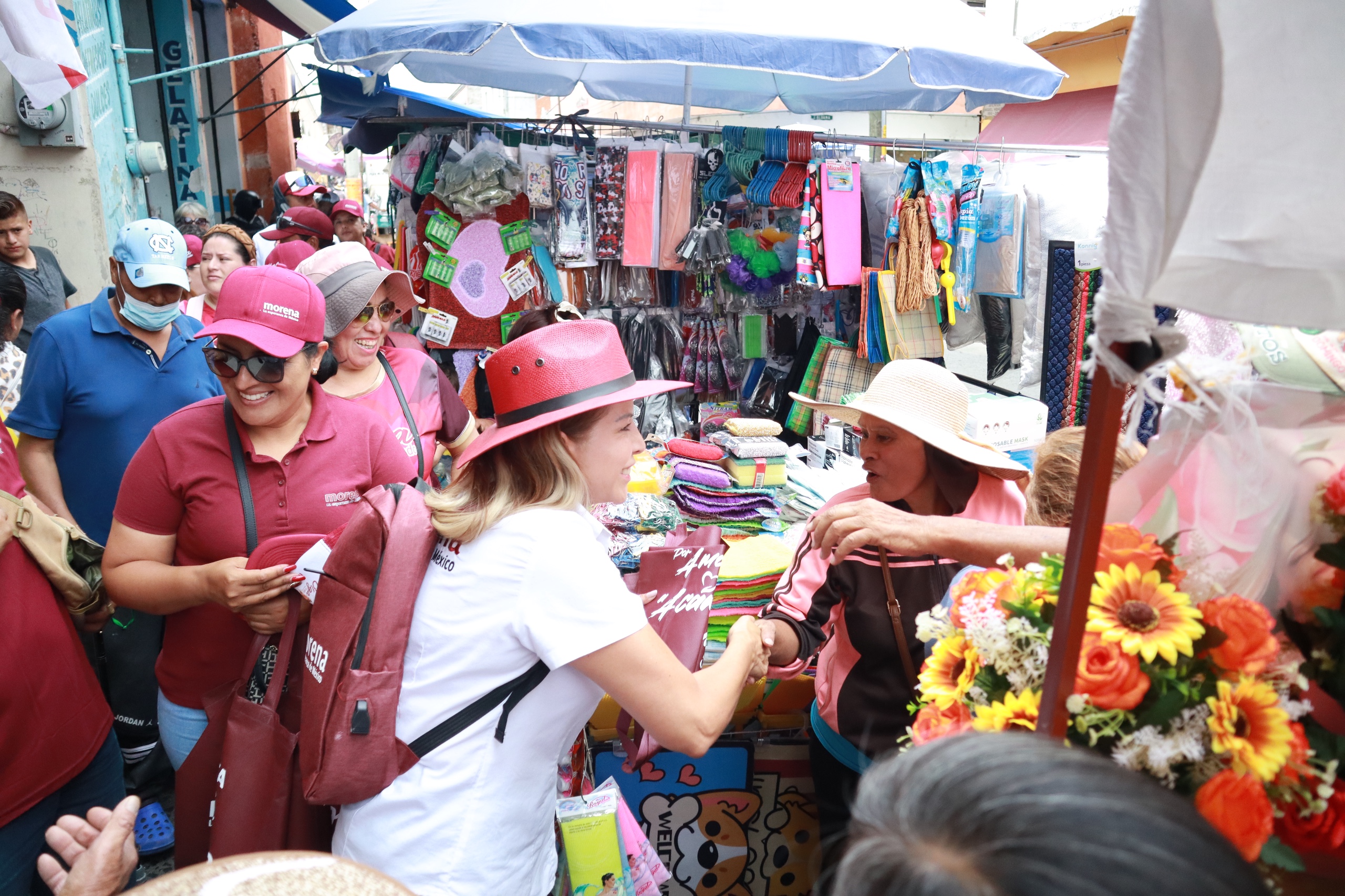 Durante su caminar, se comprometió con los vecinos a atender el tema del mal estado de las calles e impulsar a los comerciantes de la ciudad para seguir mejorando la imagen y economía de las familias.