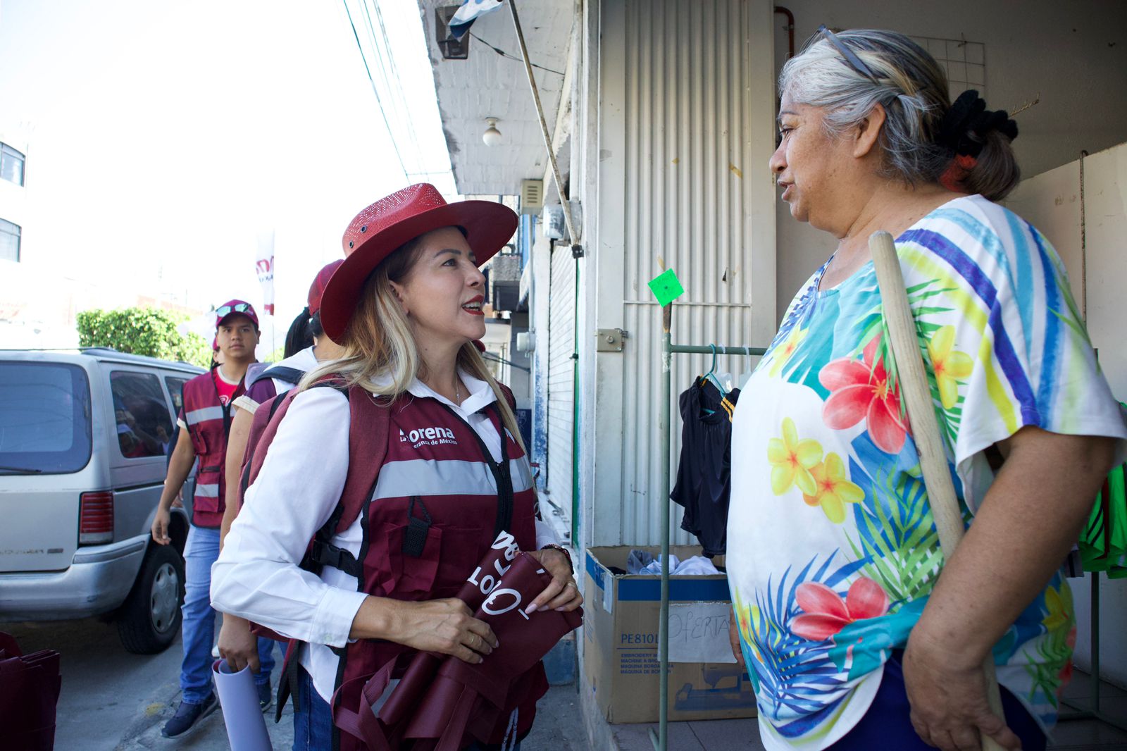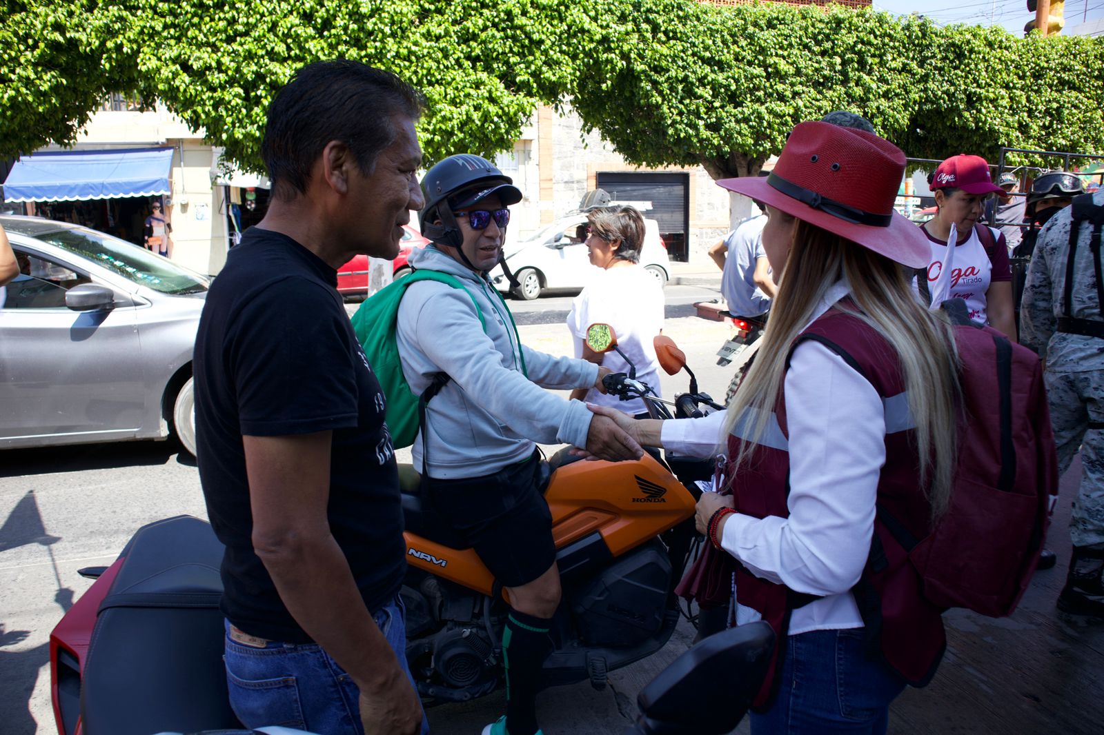 Sin descanso alguno, la candidata Olga Tirado sigue recorriendo la cabecera municipal y comunidades en compañía de un equipo de jóvenes y líderes acambarenses.