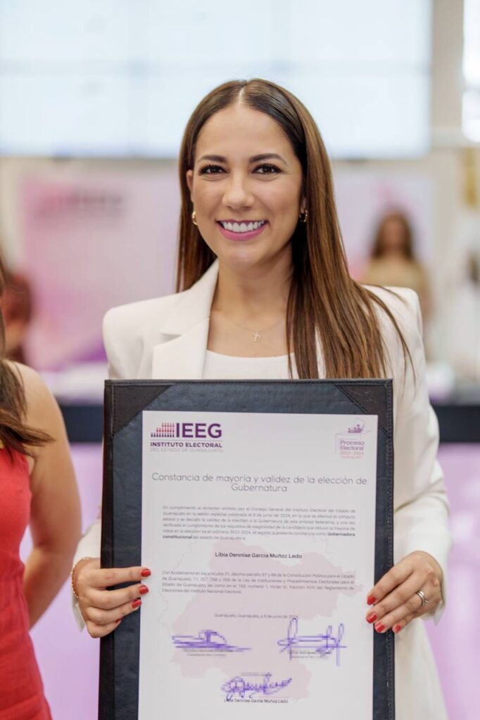 Libia Dennise García Muñoz Ledo recibió la Constancia de Mayoría que la acredita como Gobernadora electa del Estado de Guanajuato.