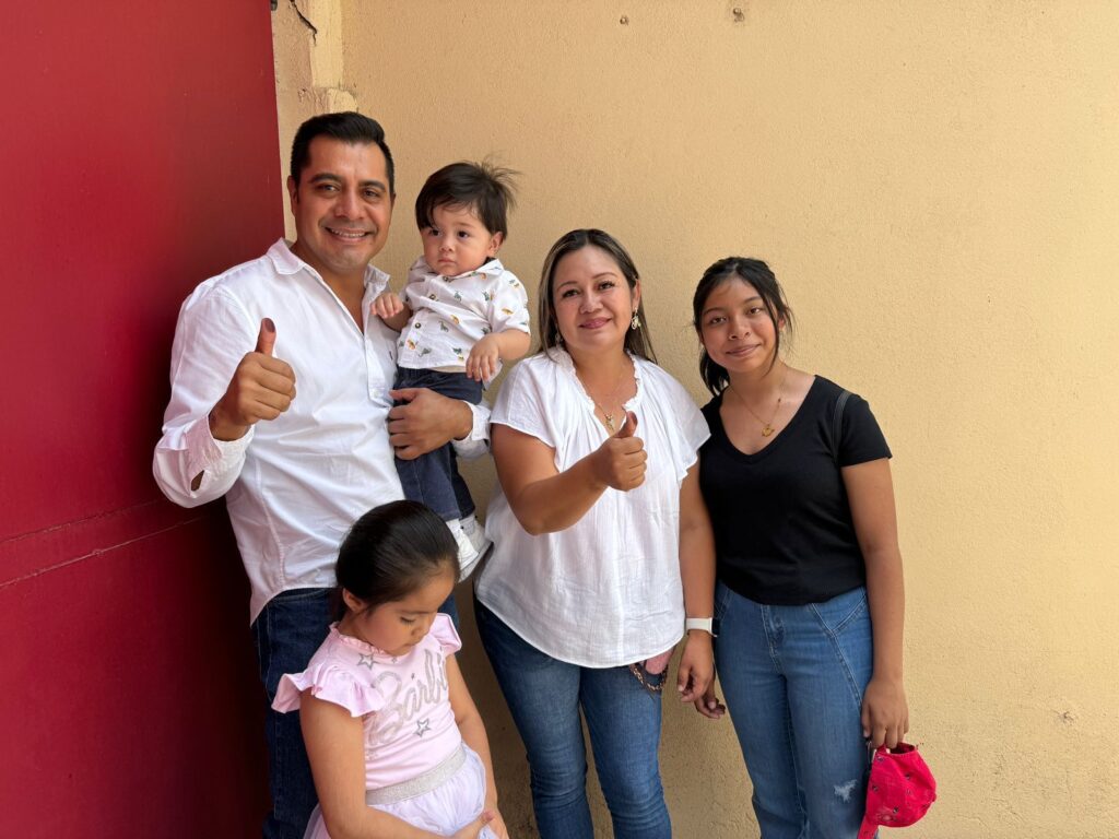 Por otro lado, el candidato de la coalición PRI-PRD-PAN, Moisés Maldonado López, acudió antes del mediodía a su casilla para emitir su voto, libre y secreto, acompañado de su esposa e hijos, de quienes mencionó son el pilar de su vida y motor para seguir adelante.