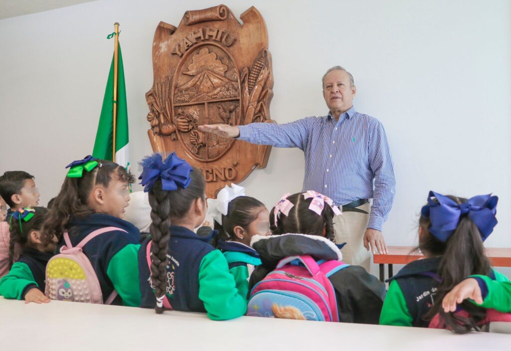 El grupo de pequeños estudiantes, fue recibido con entusiasmo por el Secretario del Ayuntamiento, Alejandro Perea Castro; el Oficial Mayor, José Martín Rosiles Patiño; y el titular de la Coordinación Municipal de Protección Civil, Salvador Juárez García, a quienes realizaron diversas preguntas para comprender mejor su labor.