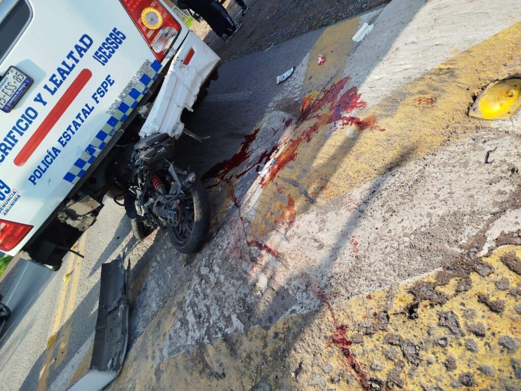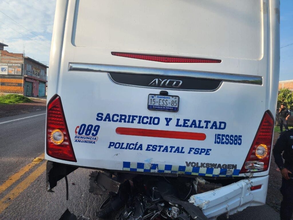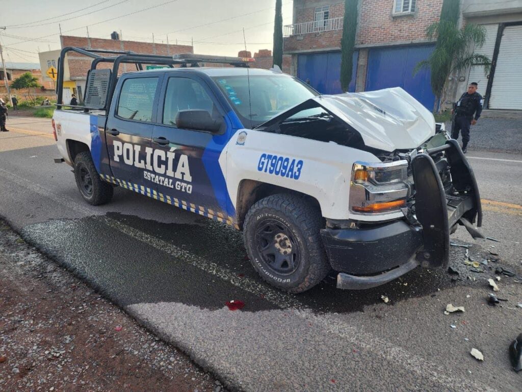 En la mañana de este lunes, elementos de Seguridad Pública del estado de Guanajuato estuvieron involucrados en un accidente vial que dejó a un motociclista en estado grave. El choque, que ocurrió entre un camión y una patrulla de la misma corporación y un ciudadano en una motocicleta deportiva, tuvo lugar en el libramiento Miguel Alemán esquina con la calle Oyamel.