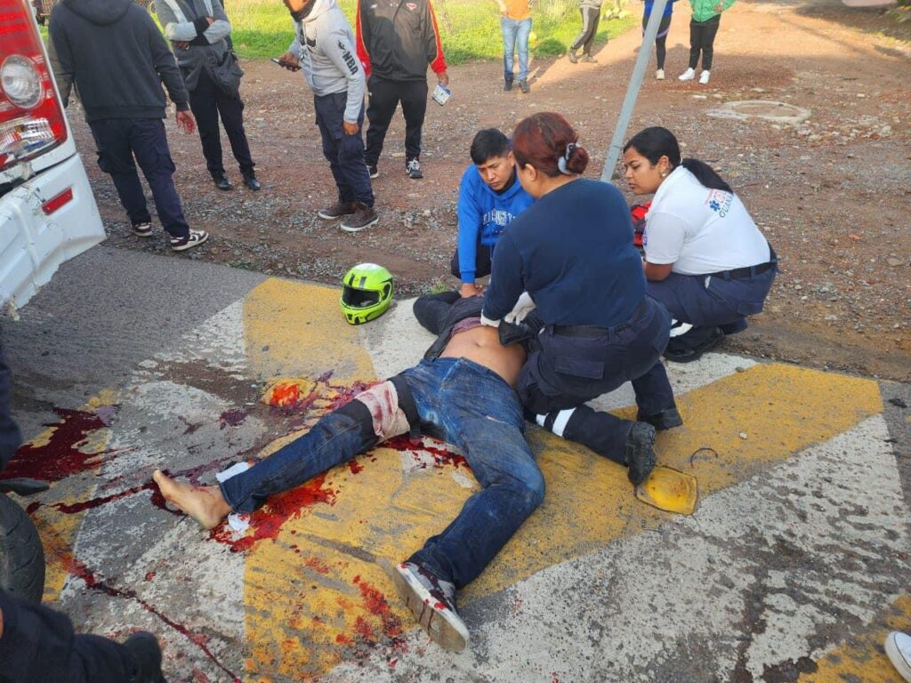 Al llegar, los rescatistas encontraron a una persona lesionada, identificada como el motociclista, quien presentaba heridas graves. Inmediatamente se le brindaron los servicios prehospitalarios necesarios en el lugar del accidente. Debido a la gravedad de sus heridas, el motociclista fue trasladado a una unidad médica para su valoración y atención especializada. Su estado fue reportado como crítico, bajo el código rojo, que indica una condición muy grave.