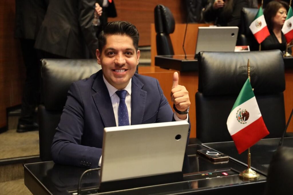 El senador Emmanuel Reyes Carmona, luego de emitir su voto y al anunciar en el tablero electrónico la mayoría de aceptación, este primero de octubre será el primero de cada seis años en que habrá descanso obligatorio.