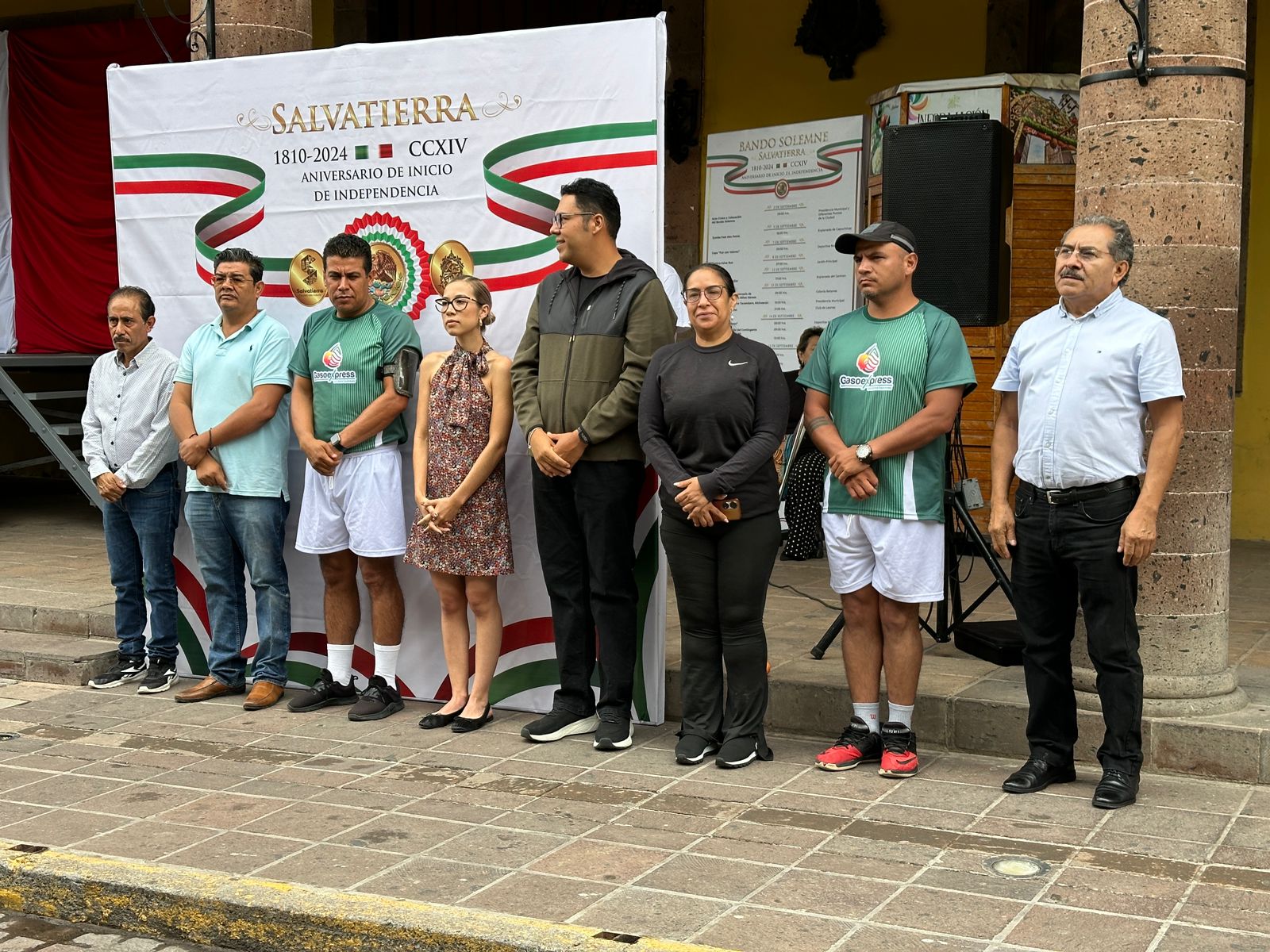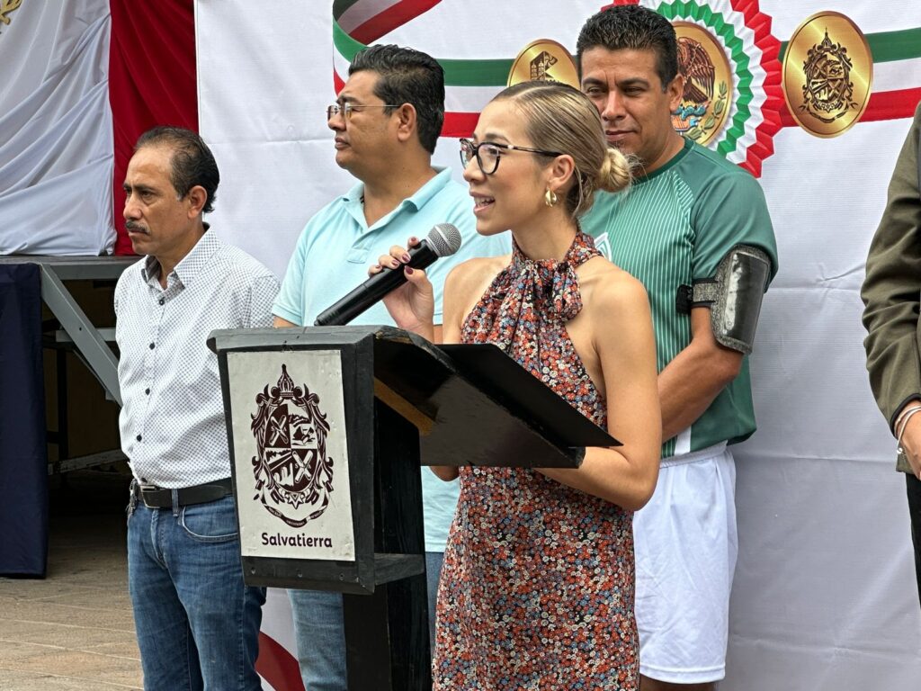 El evento se desarrolló frente a la presidencia municipal de Salvatierra, donde Marieli Cervantes Vega, presidenta del sistema DIF municipal, en representación del presidente de Salvatierra, encabezó los honores cívicos acompañada por miembros del ayuntamiento.