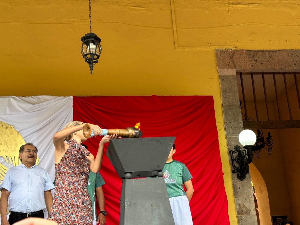 El acto cívico culminó con la ceremonia en la que el presidium encendió el fuego simbólico en la plaza frente a la presidencia municipal. Finalmente, el contingente, trotando, emprendió su camino con el fuego en dirección a su ciudad de origen, donde culminará este significativo recorrido patriótico.