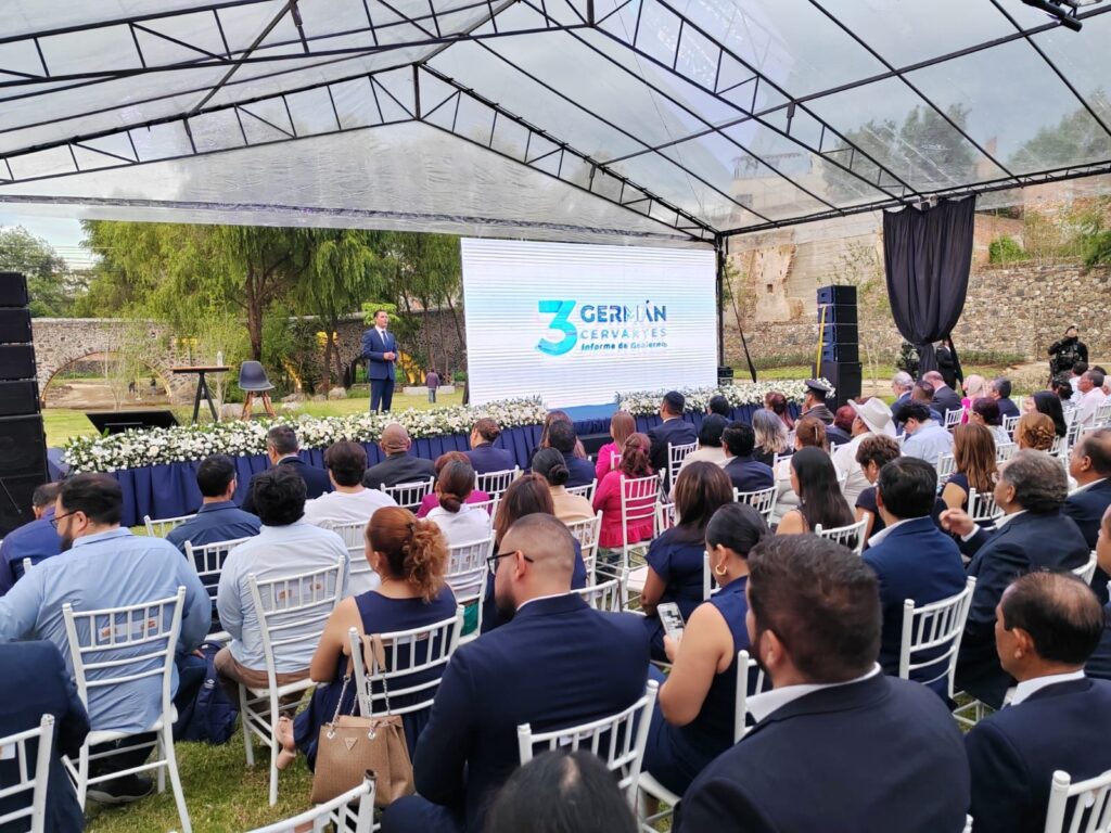 El Presidente Municipal Germán Cervantes Vega rindió su rindió su tercer informe de gobierno ante las familias salvaterrenses en donde destacó la histórica inversión en 3 años obras públicas, el incremento de apoyos a los sectores del campo y desarrollo social, el cambio de imagen urbana nocturna con el cambio de luminarias y acciones implementadas en Deportes, vialidad y seguridad pública.