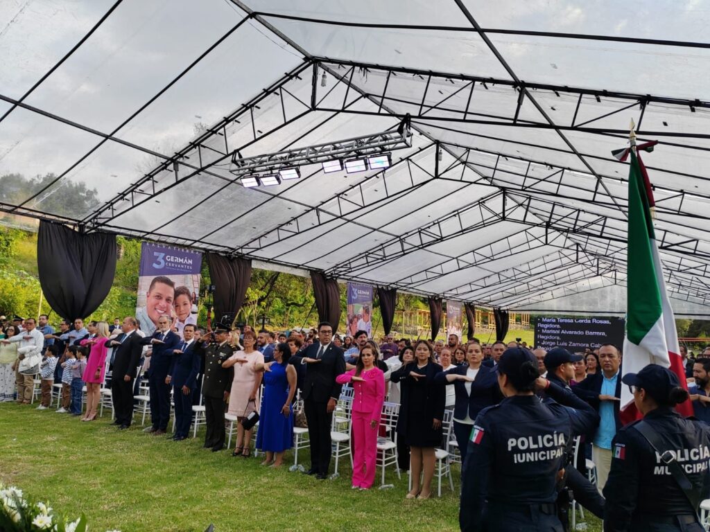 En su mensaje Cervantes Vega puntualizó que durante estos 3 años de gobierno se invirtieron 313 millones de pesos en obras públicas que cambiaron la imagen urbana y calidad de vida de las familias salvaterrenses destacando que 125 millones se aplicaron en la pavimentación de 55 calles en colonias y comunidades, 45 millones 400 mil pesos se utilizaron en la mejora de áreas deportivas teniendo como mayor obra el nuevo módulo deportivo con duela de básquetbol.