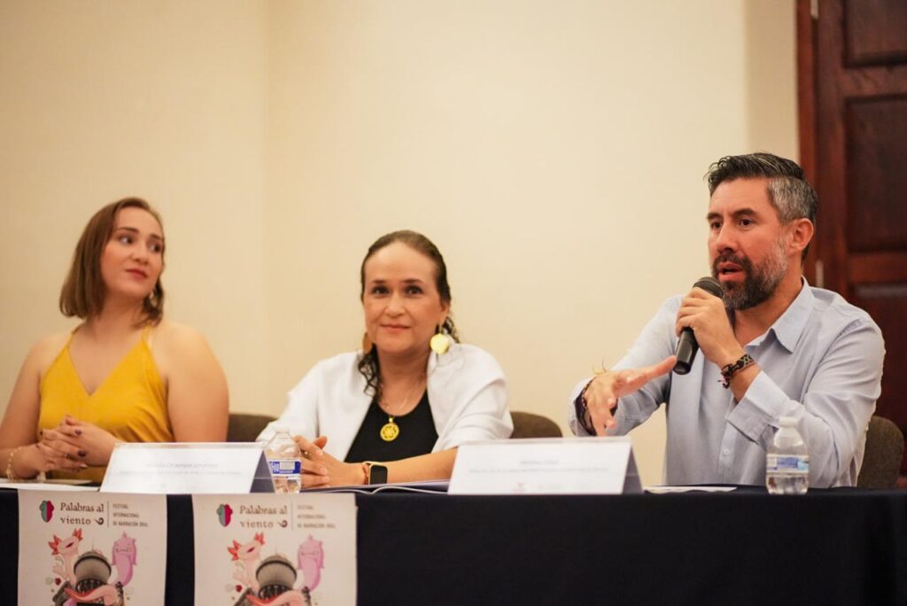 La información se dio a conocer en una rueda de prensa realizada en la sala “Hermilo Novelo” de Casa de la Cultura, donde participaron la directora general del INSMACC, Aleida Ocampo Jiménez; la presidenta del Festival Internacional de Narración Oral “Palabras al Viento”, Fedora Farías, así como Walter Díaz, director de la Unidad de Patrimonio y Desarrollo Cultural.
