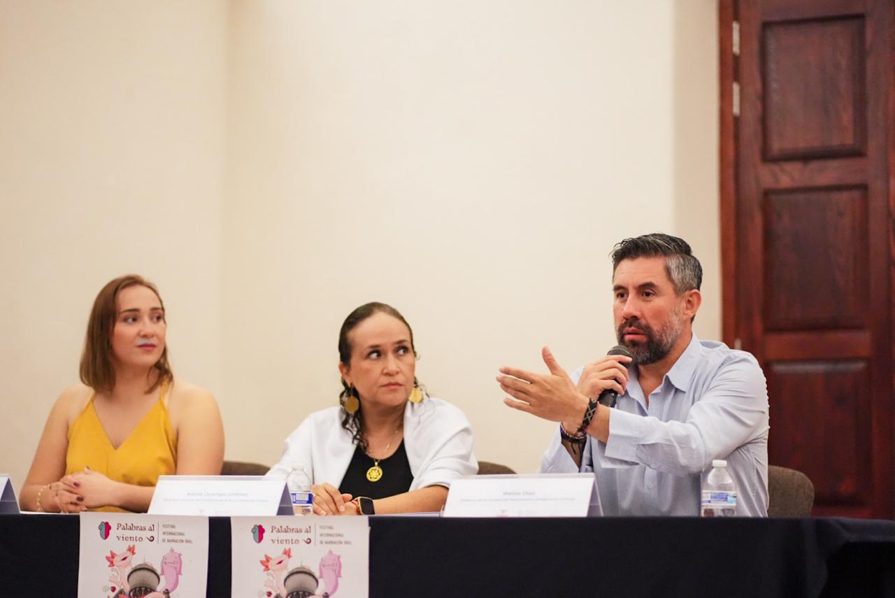 La información se dio a conocer en una rueda de prensa realizada en la sala “Hermilo Novelo” de Casa de la Cultura, donde participaron la directora general del INSMACC, Aleida Ocampo Jiménez; la presidenta del Festival Internacional de Narración Oral “Palabras al Viento”, Fedora Farías, así como Walter Díaz, director de la Unidad de Patrimonio y Desarrollo Cultural.