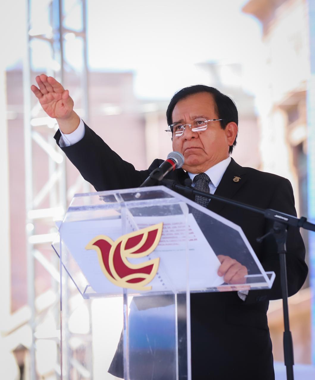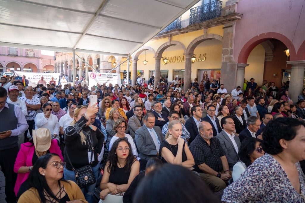 Acompañado por la gobernadora el estado, Libia Dennise García Muñoz Ledo; la diputada Edith Moreno, en representación de Poder Legislativo; José Francisco Lara, en representación del Poder Judicial; teniente coronel de caballería Ramón Carrillo Huerta, en representación del general diplomado del Estado Mayor, Laureano Carrillo Rodríguez, y representante personal del comandante de la 16 Zona Militar, el presidente Juan Miguel Ramírez rindió la protesta de ley para asumir el cargo y posteriormente tomó protesta a los integrantes del Ayuntamiento.