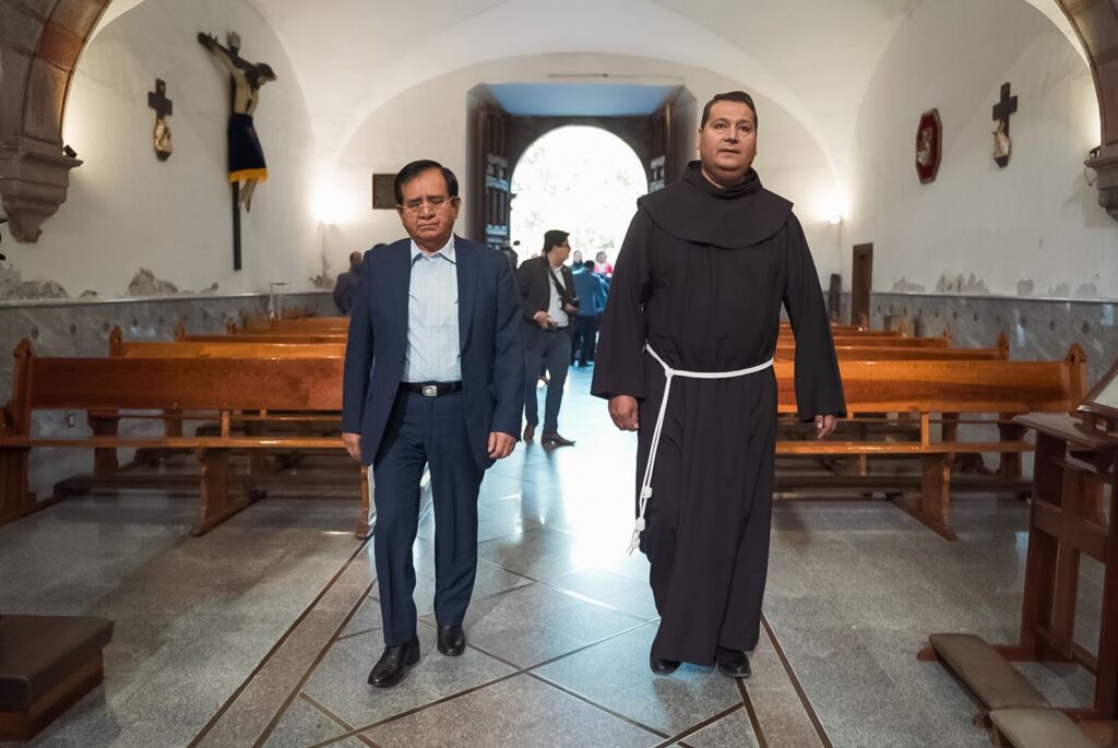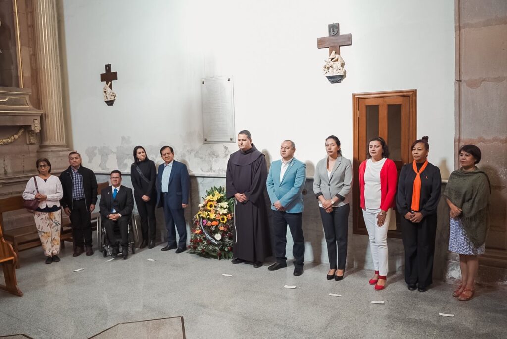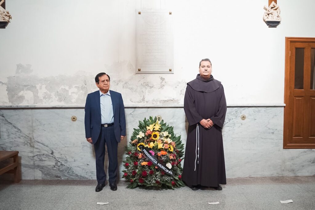 En el templo de la Tercera Orden, donde descansan los restos de Emeteria Valencia, se realizó el evento con la presencia de integrantes del Ayuntamiento, directores de las dependencias municipales, así como el anfitrión, vicario provincial Fray Raymundo Castillo.