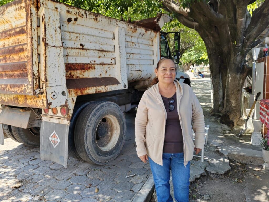 Susana Torres Martínez, administradora de los panteones municipales, informó que desde el primer día de la administración se ha trabajado en la mejora de estos espacios, enfocándose en la limpieza de entradas y pasillos, los cuales estaban llenos de residuos, principalmente restos de alimentos, botellas de vidrio y plástico.