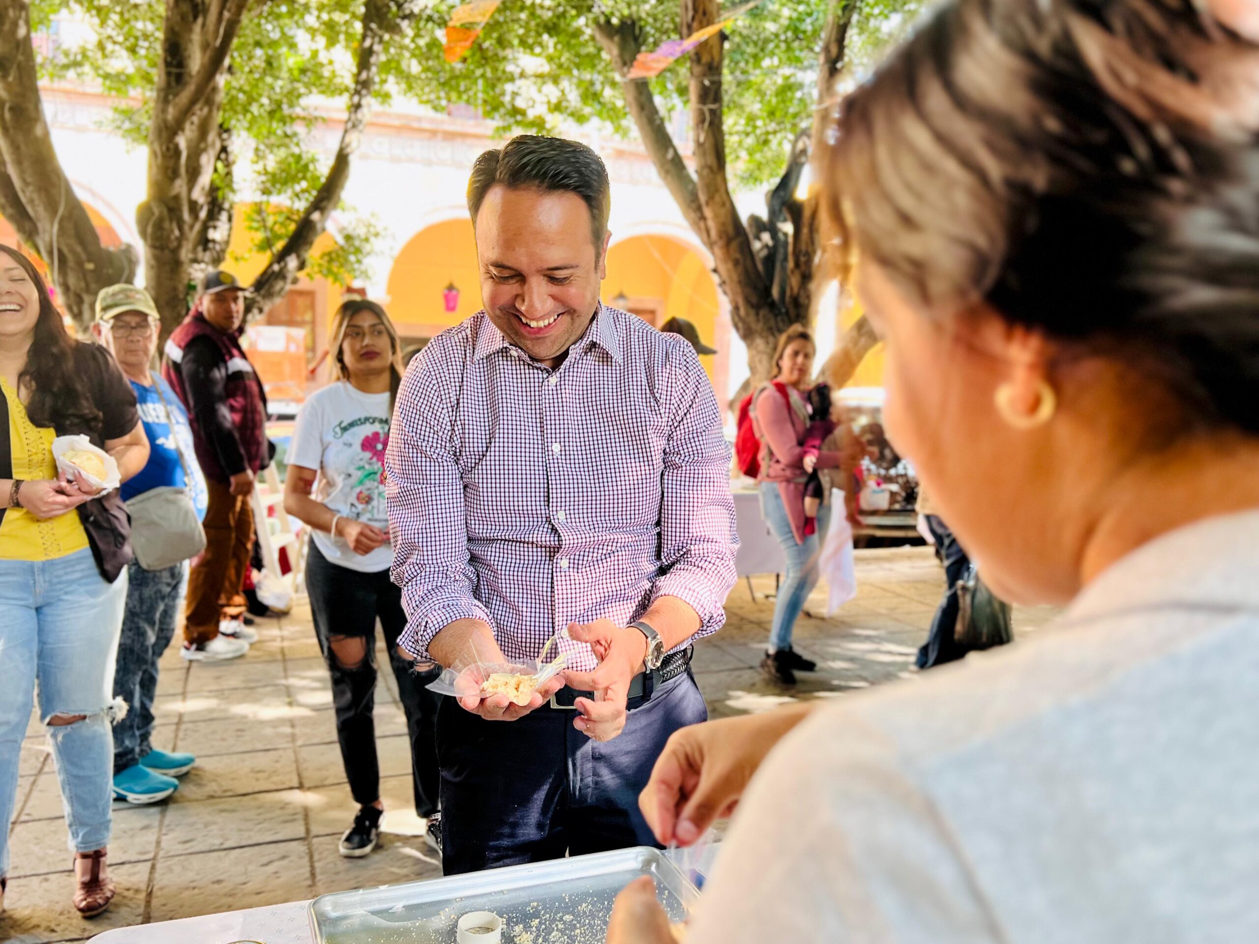 Con el objetivo de apoyar el comercio local y a los artesanos de la región, el Presidente Municipal, José Daniel Sámano Jiménez, inauguró el Pabellón Artesanal como parte del “Festival de las Almas”. Este espacio estará disponible en el jardín principal hasta el 1 de noviembre, en un horario de 10:00 a.m. a 3:00 p.m.