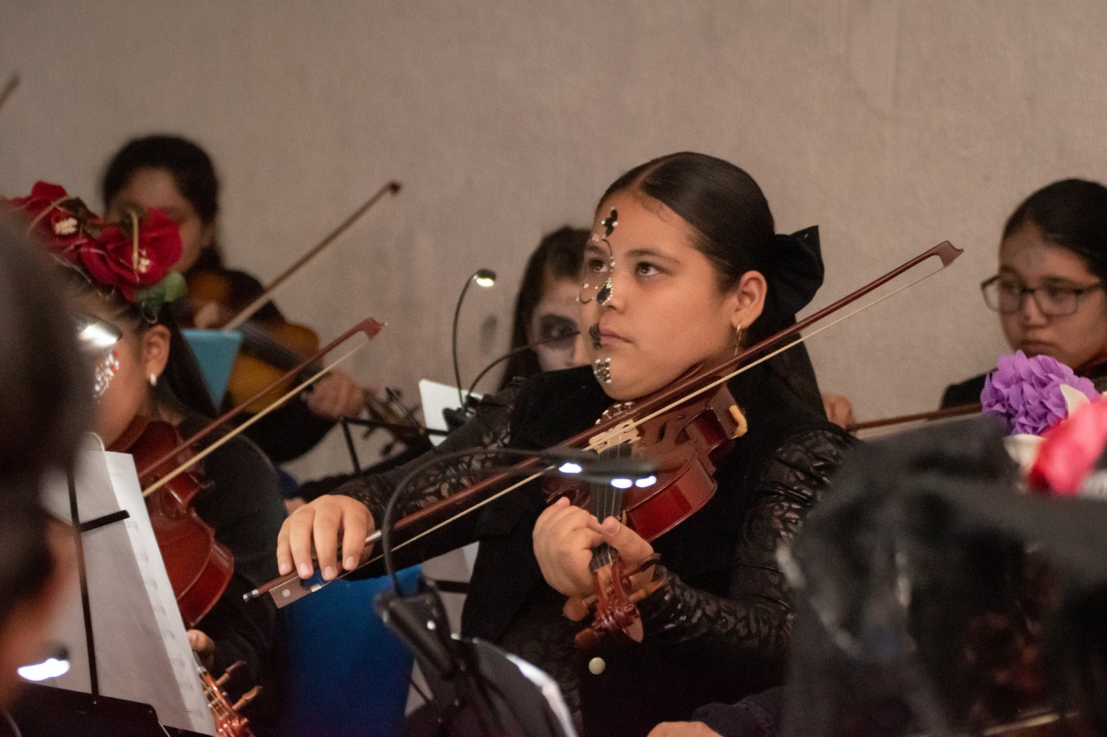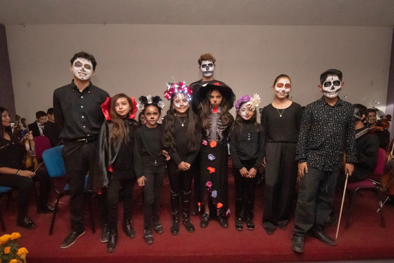Fue en el auditorio del CASSA donde se vivió esta emocionante presentación de los pequeños músicos, quienes además se caracterizaron de Catrinas y Catrines, haciendo de esta velada, una experiencia inolvidable para los asistentes.