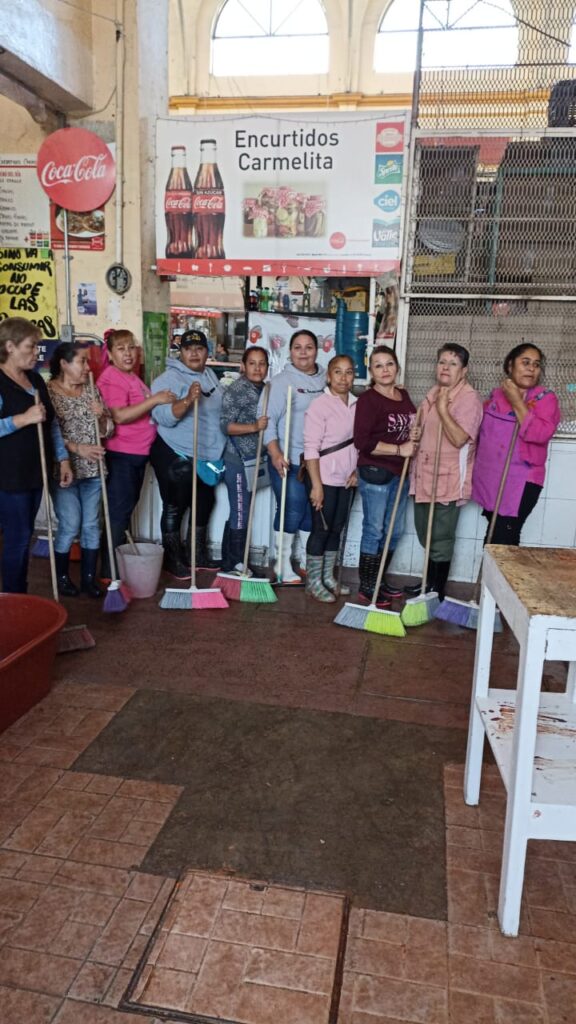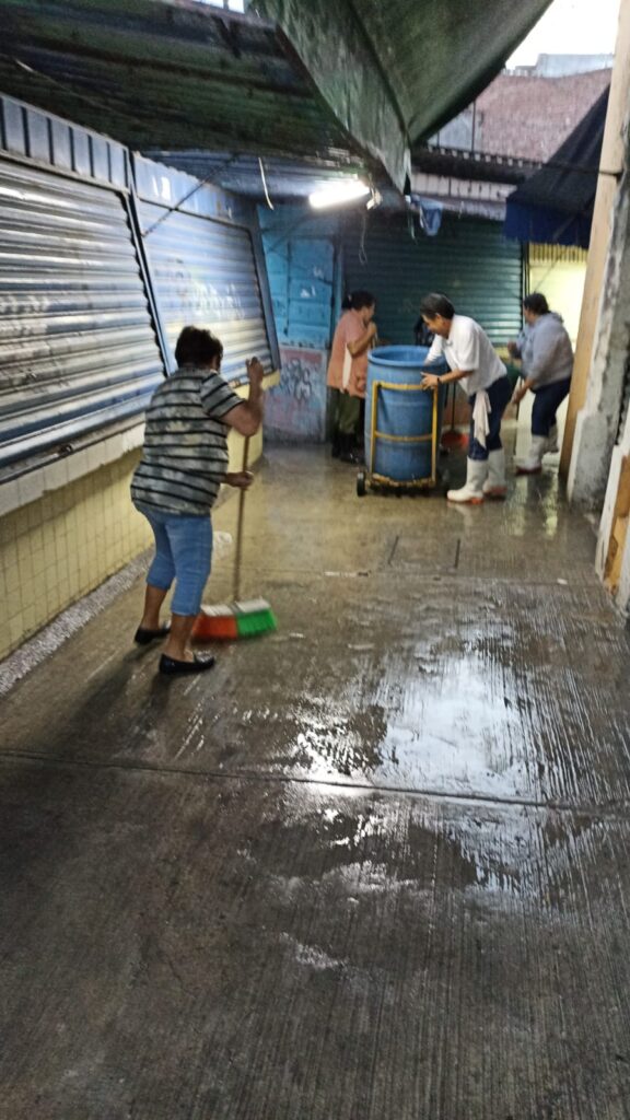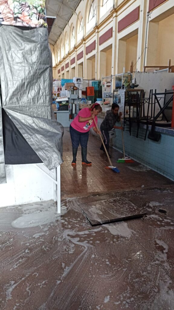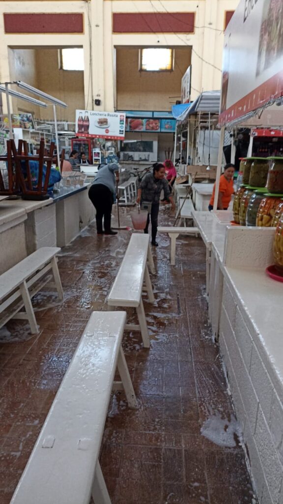 En estas labores de limpieza participan personal administrativo del Mercado Hidalgo, con el apoyo de afanadoras de la Dirección de Servicios Municipales para completar dicha labor.