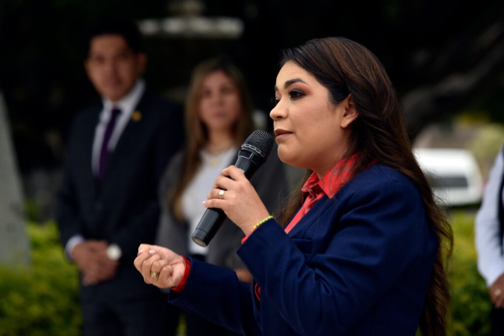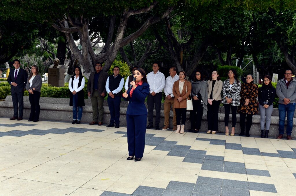 Luego de rendir honores a la Bandera en el jardín principal, la alcaldesa Cinthia Teniente exhortó a todos los trabajadores y empleados municipales, a que desarrollen sus trabajos con esfuerzo y austeridad, porque no hay recursos para excesos.