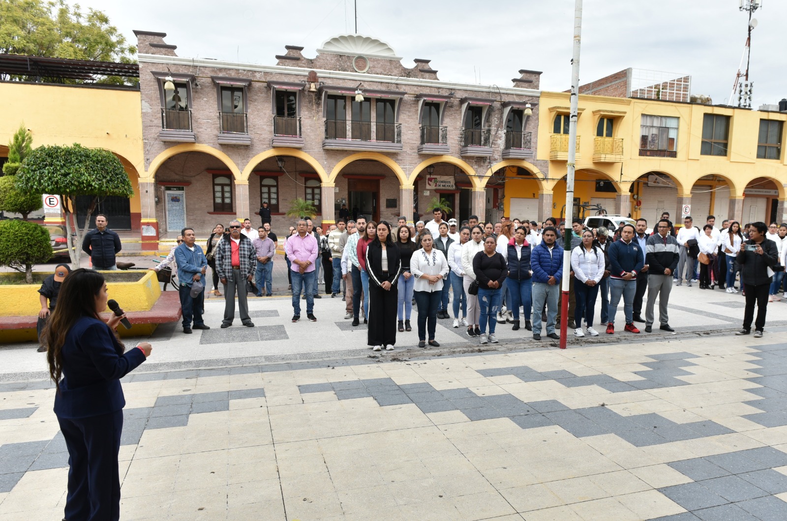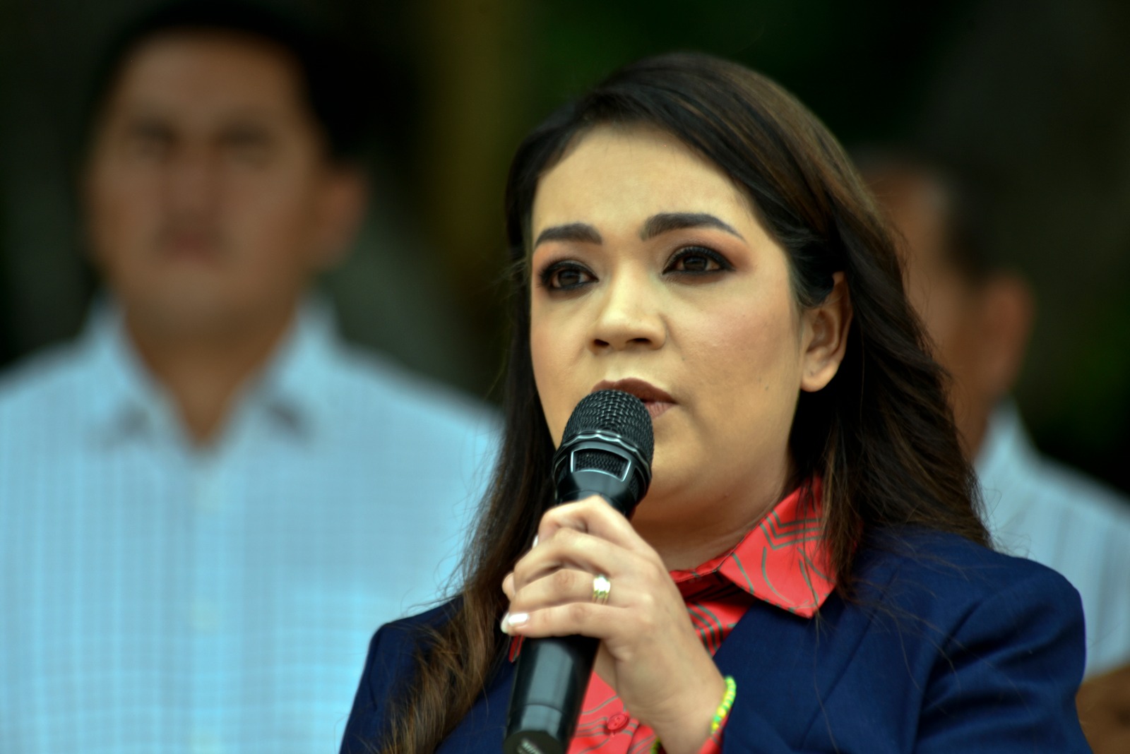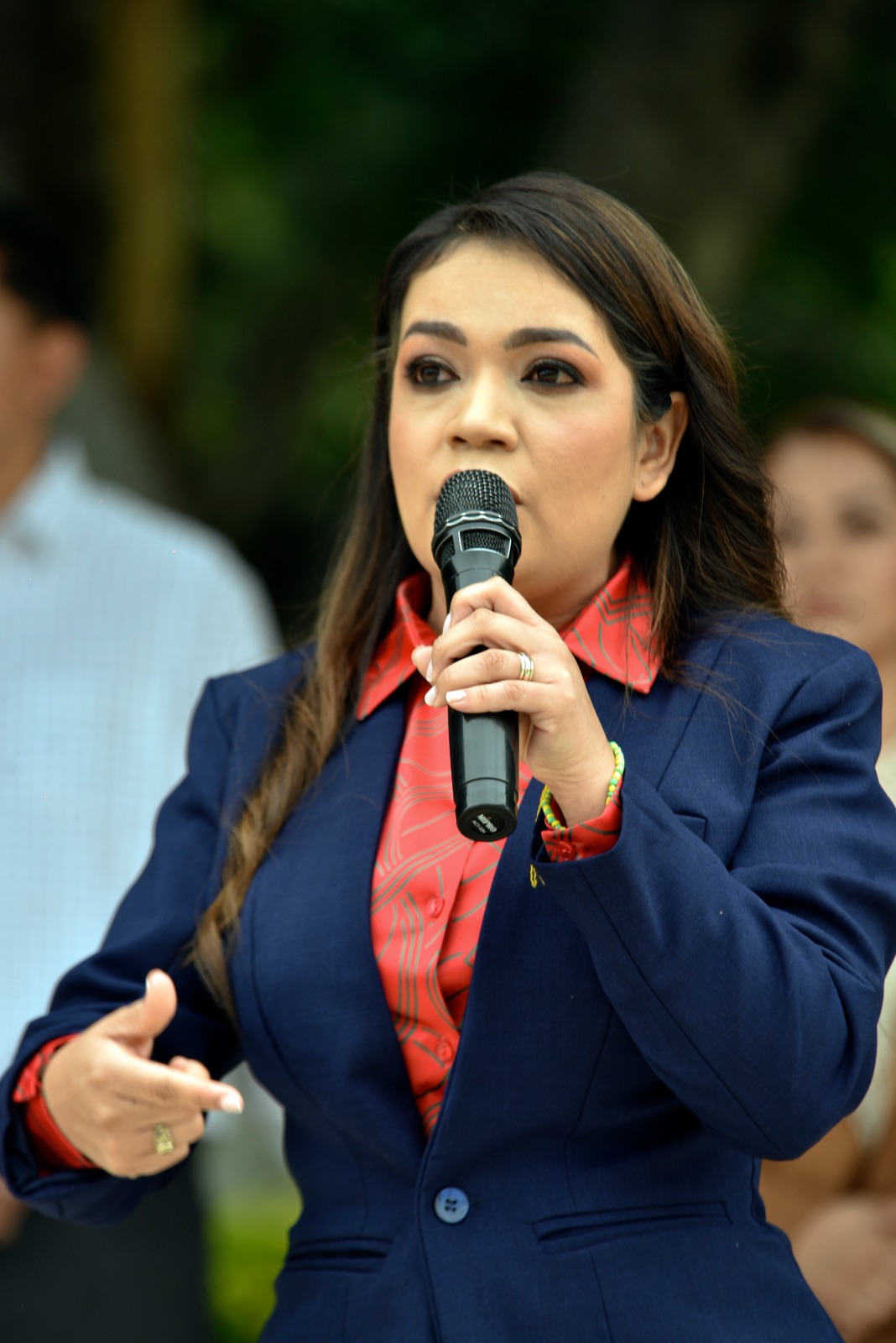 Luego de rendir honores a la Bandera en el jardín principal, la alcaldesa Cinthia Teniente exhortó a todos los trabajadores y empleados municipales, a que desarrollen sus trabajos con esfuerzo y austeridad, porque no hay recursos para excesos.